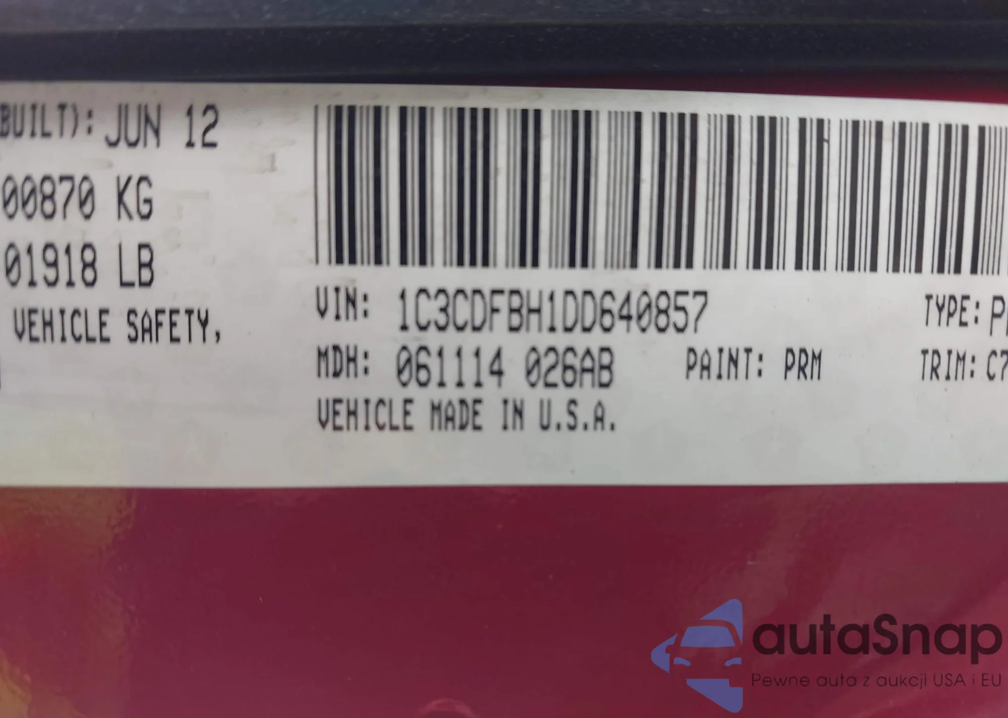 VIN: 1C3CDFBH1DD640857