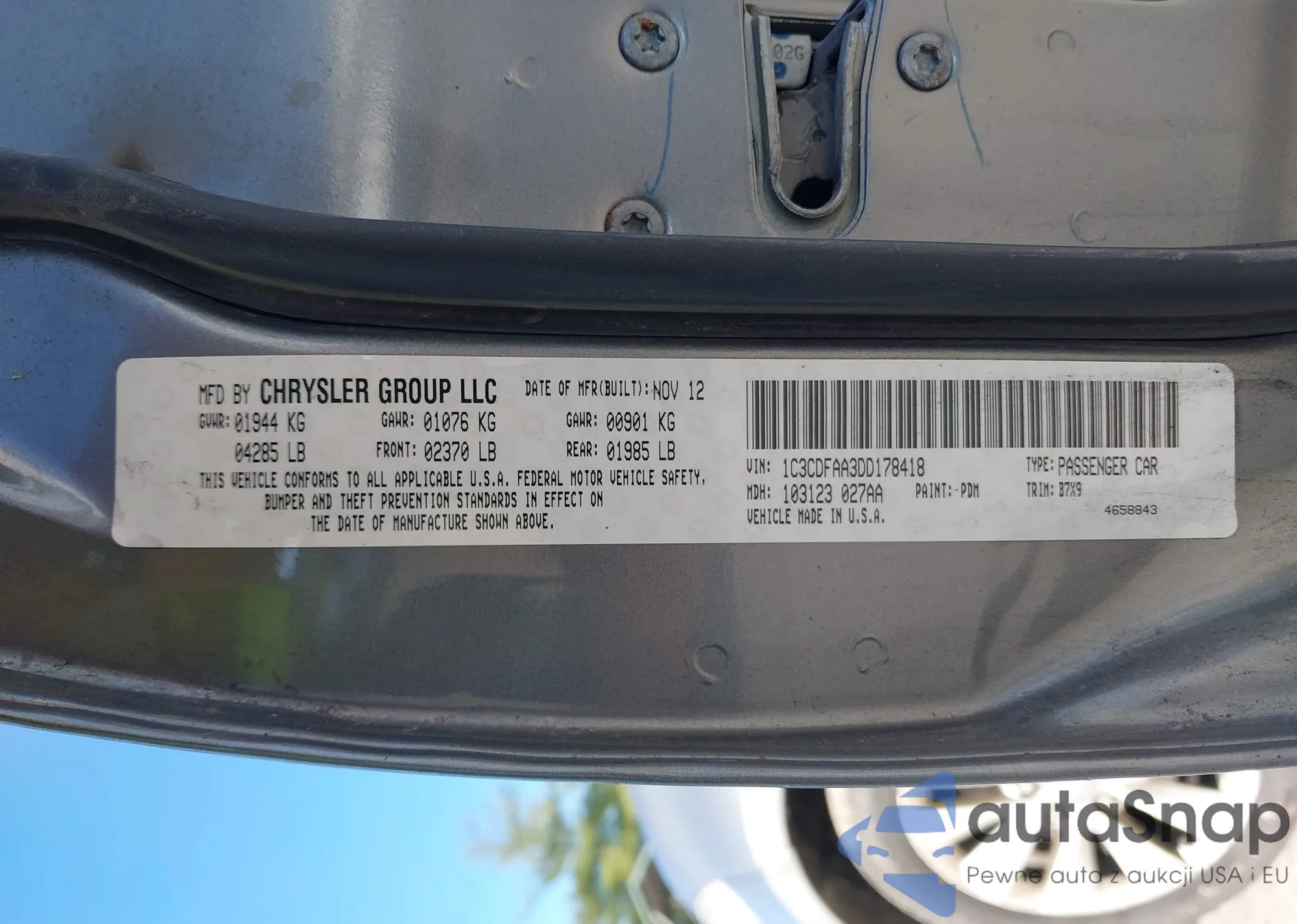 VIN: 1C3CDFAA3DD178418