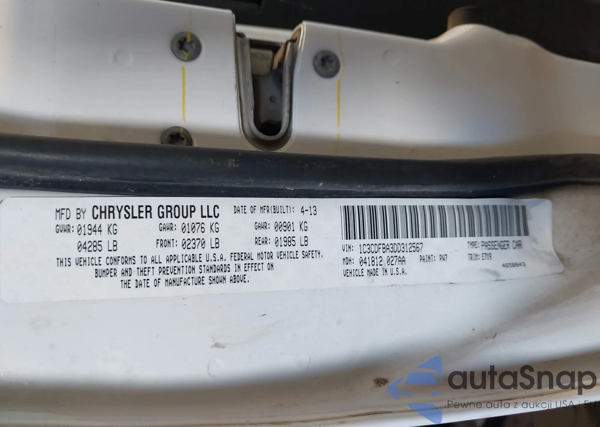 • VIN: 1C3CDFBA3DD312567