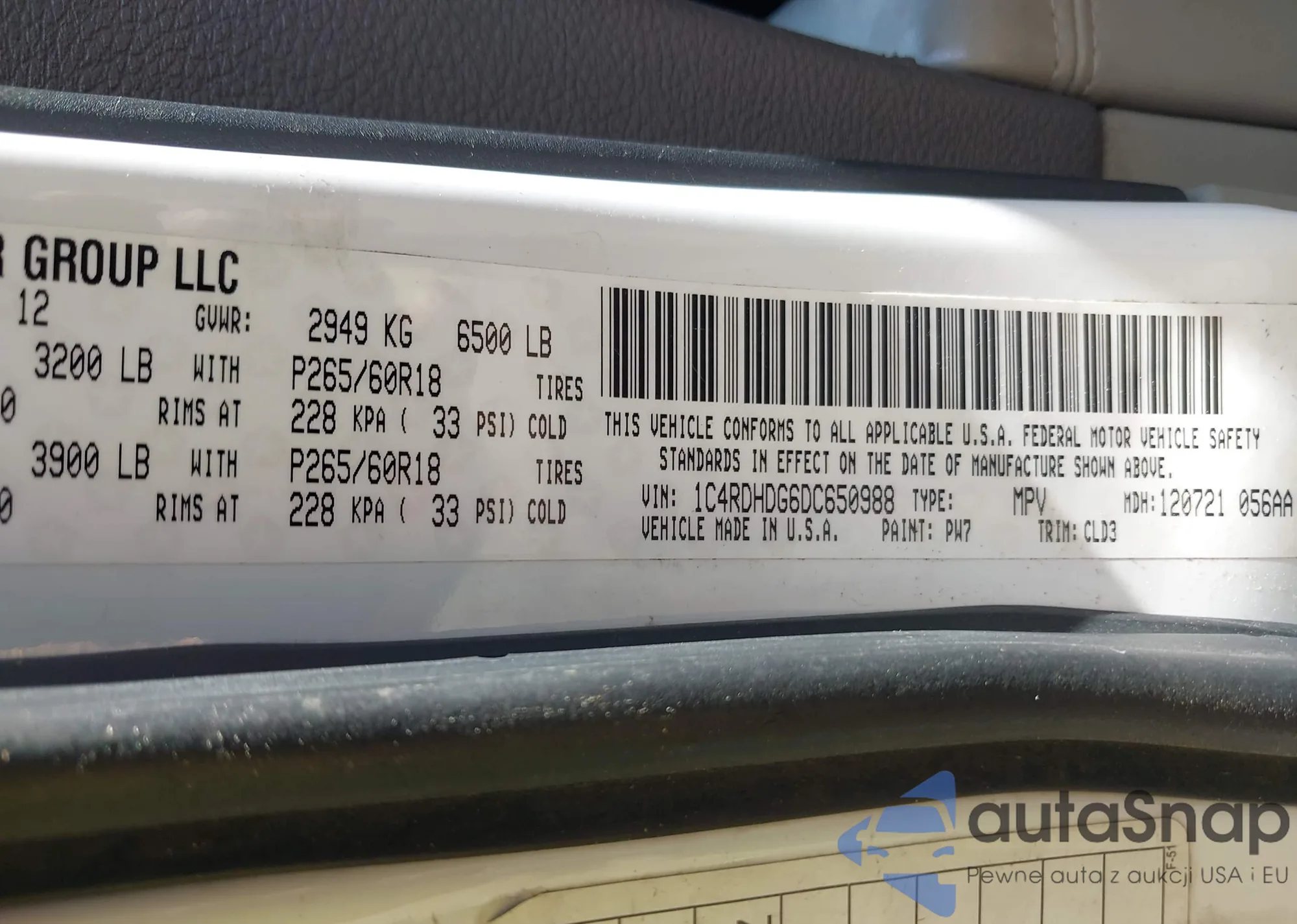 VIN: 1C4RDHDG6DC650988