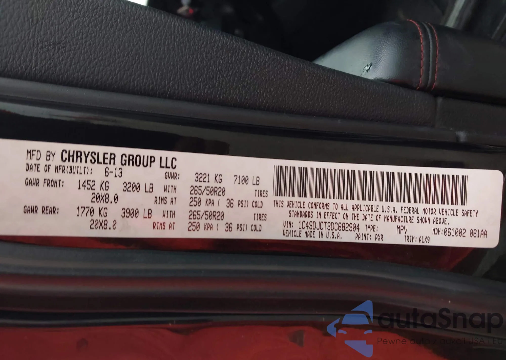 • VIN: 1C4SDJCT3DC682904