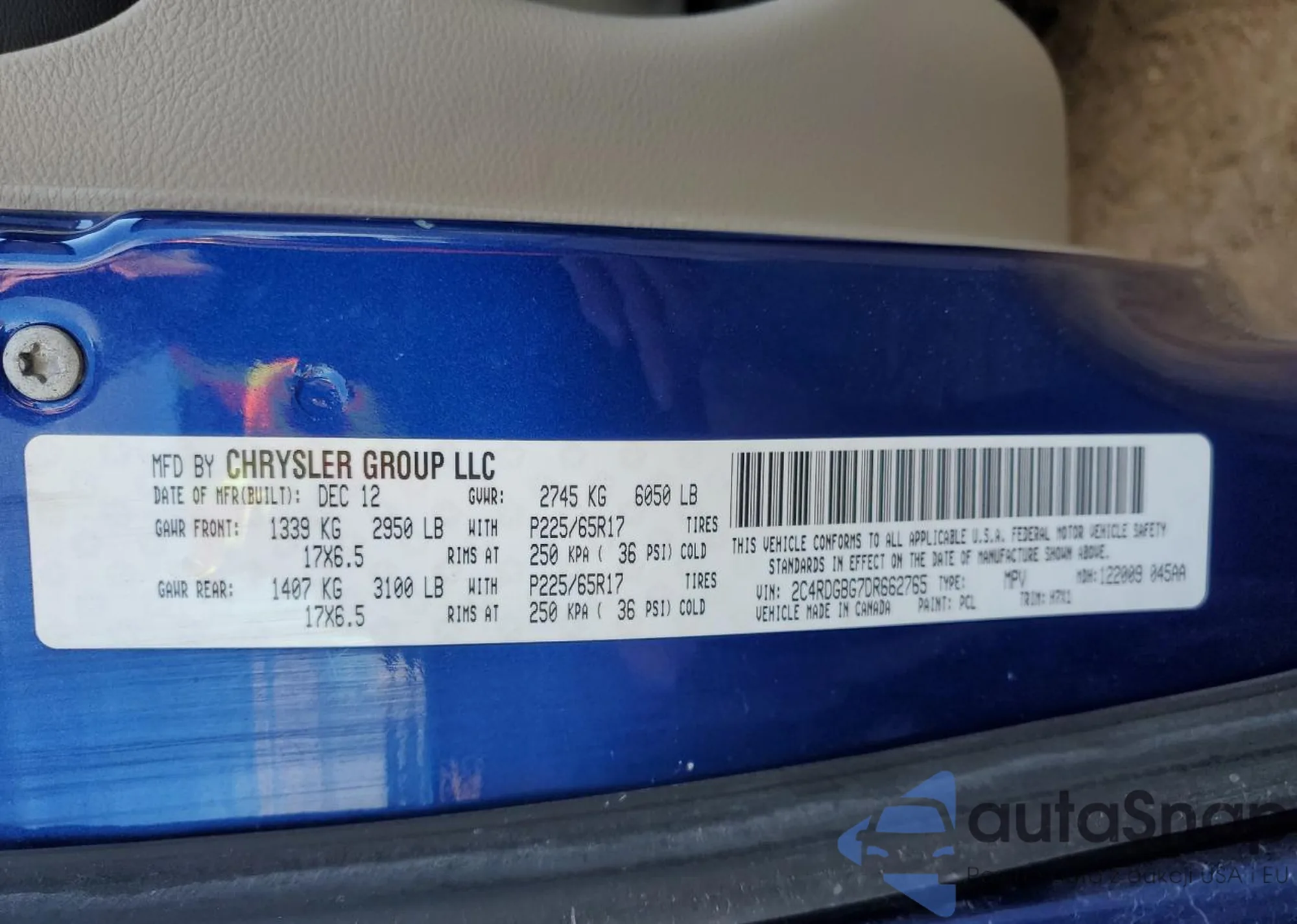 VIN: 2C4RDGBG7DR662765