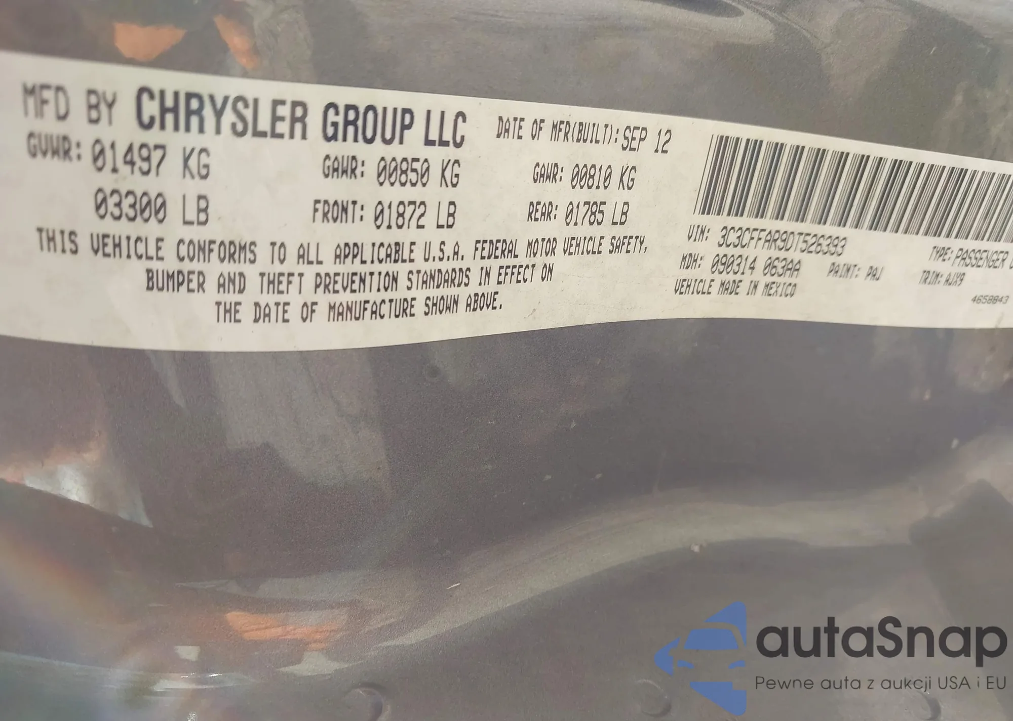 VIN: 3C3CFFAR9DT526393