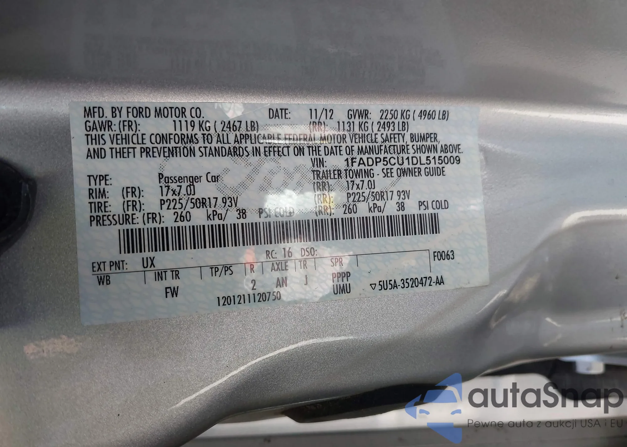 VIN: 1FADP5CU1DL515009