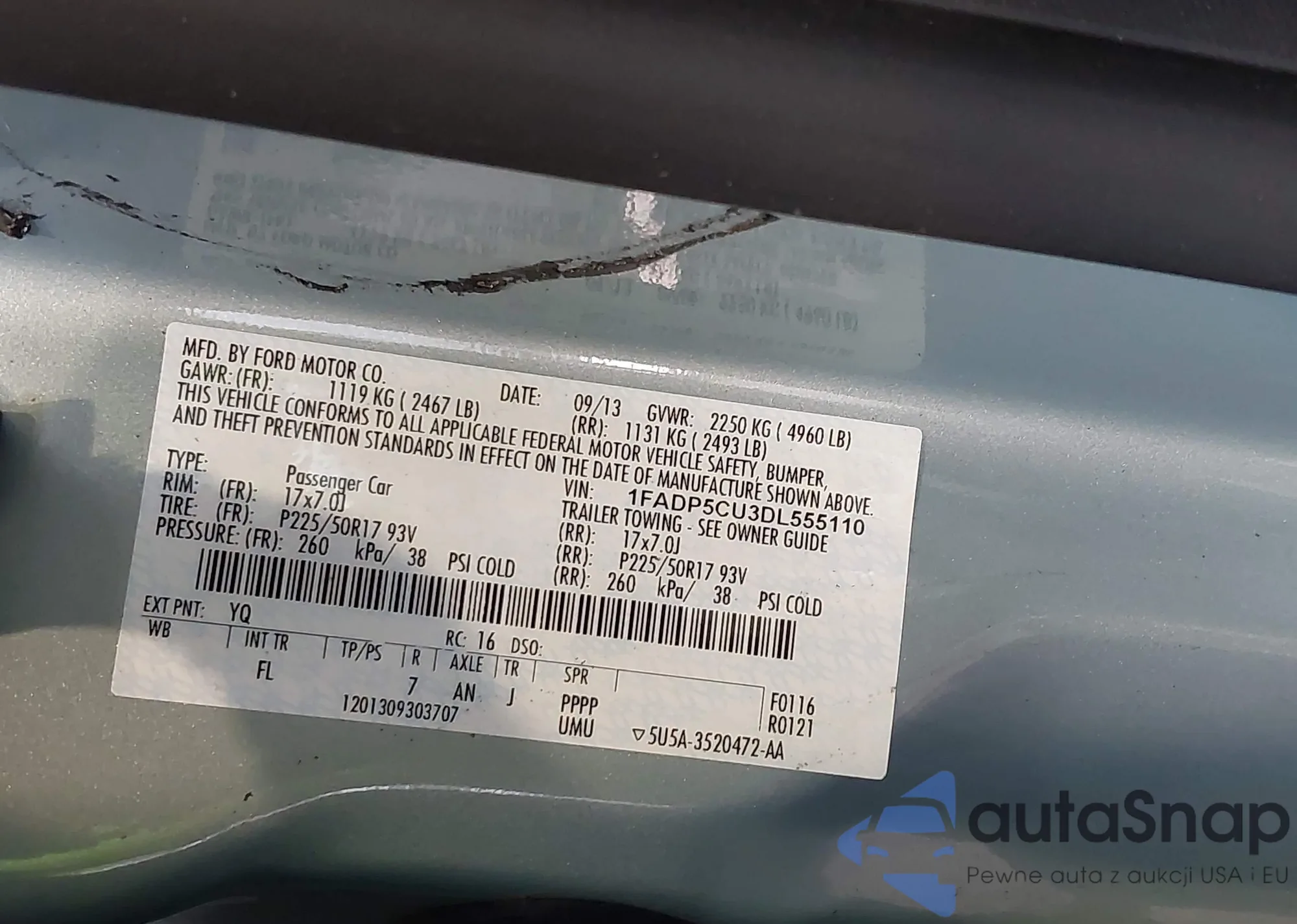 VIN: 1FADP5CU3DL555110