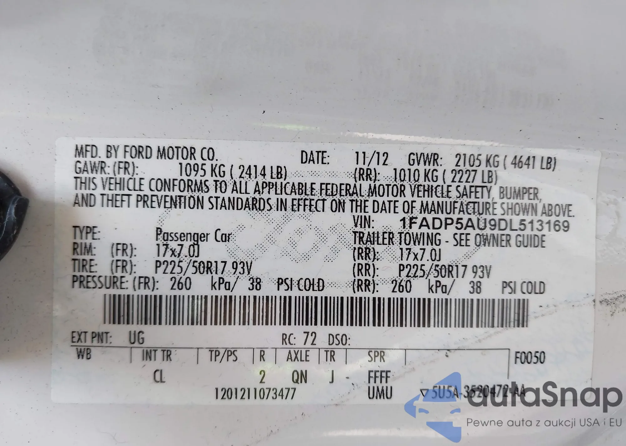 VIN: 1FADP5AU9DL513169