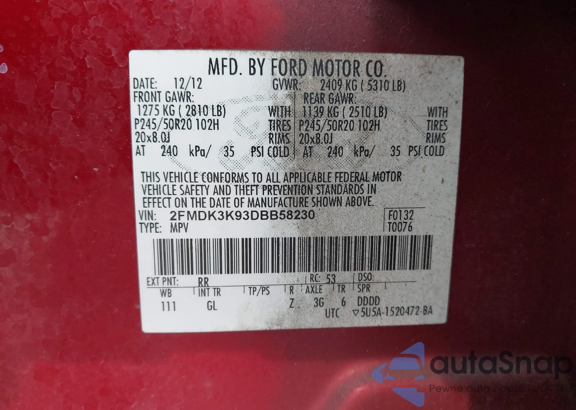 VIN: 2FMDK3K93DBB58230