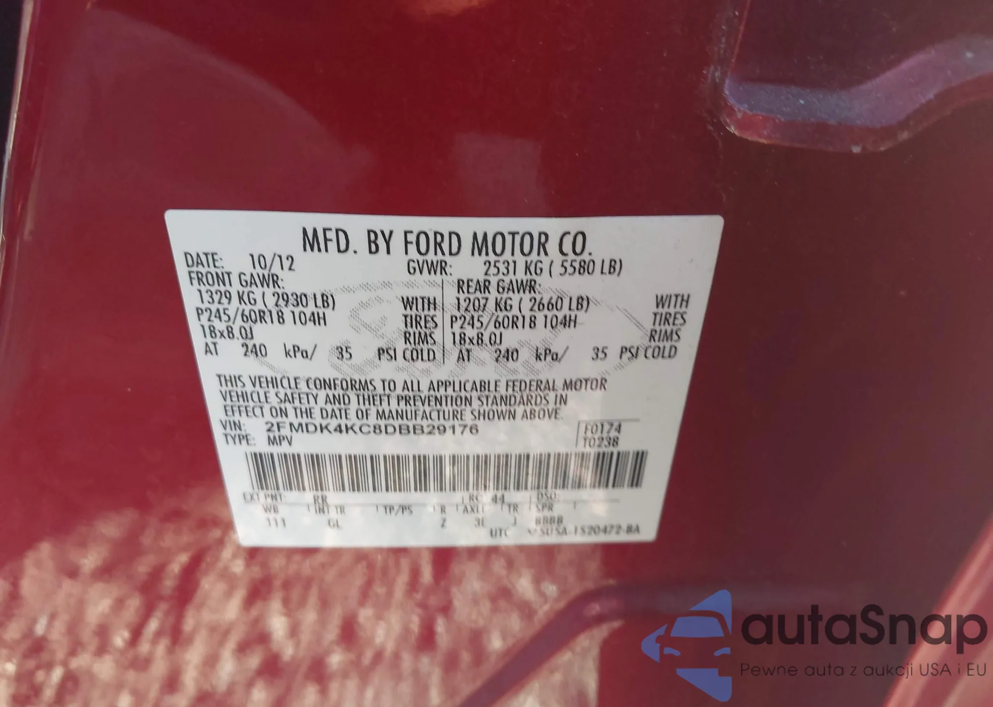 Автомобиль Ford Edge 2013 (VIN 2FMDK4KC8DBB29176) ранее не участвовал в торгах. Документы чистые, пробег соответствует или ниже среднего по рынку. Продаётся страховой компанией — рекомендуем покупку. Доставка в порт займет около 6–8 недель.