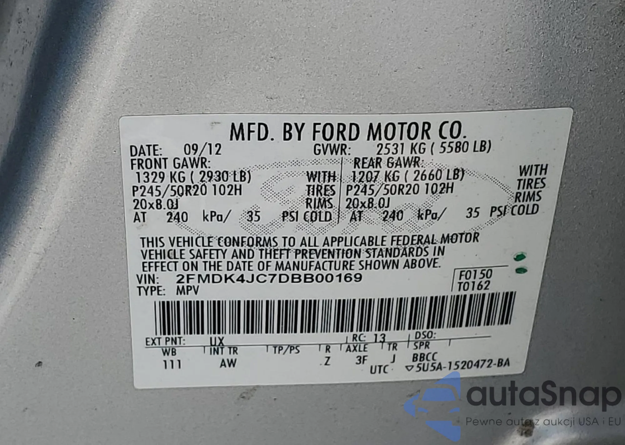 VIN: 2FMDK4JC7DBB00169