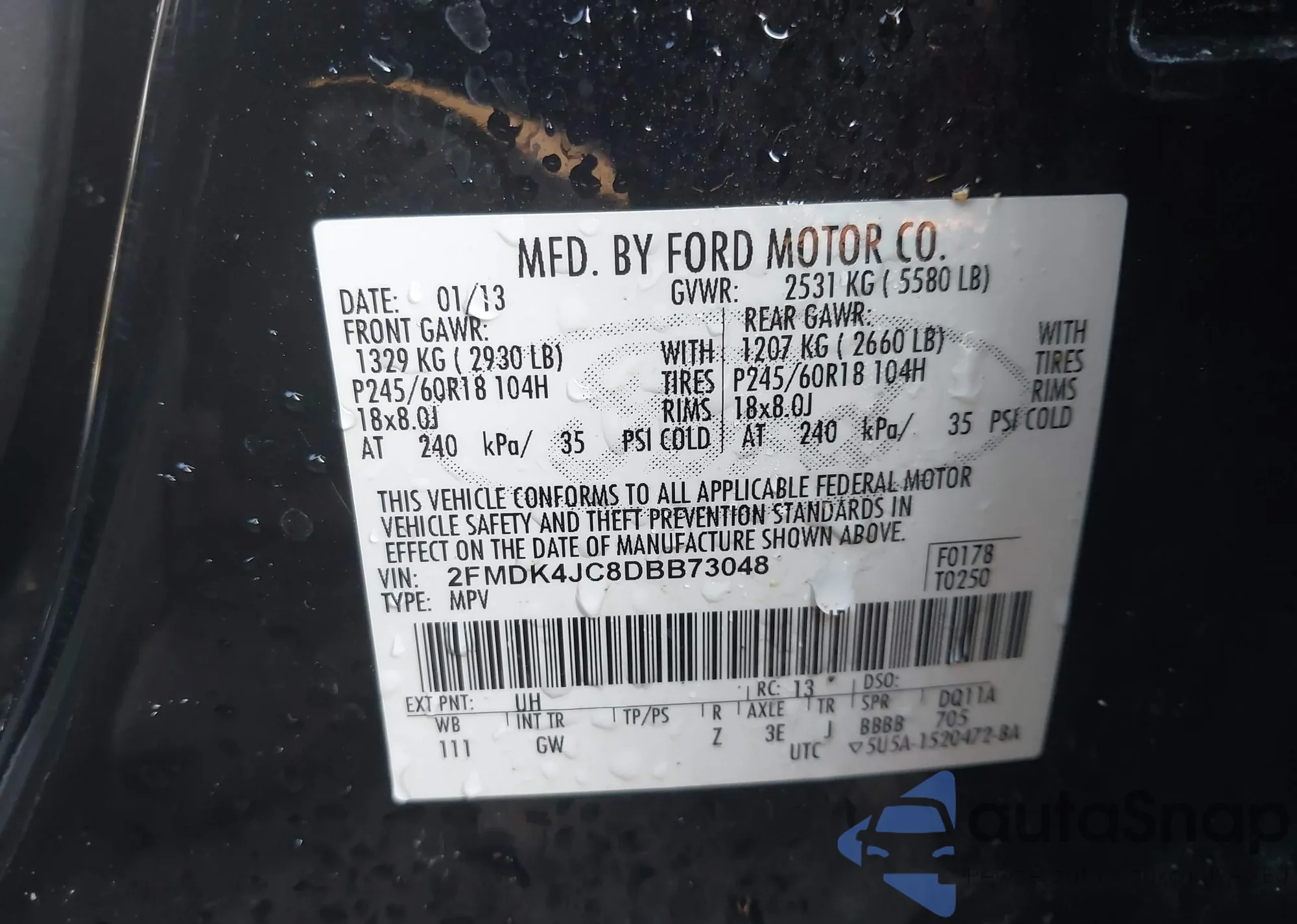 VIN: 2FMDK4JC8DBB73048