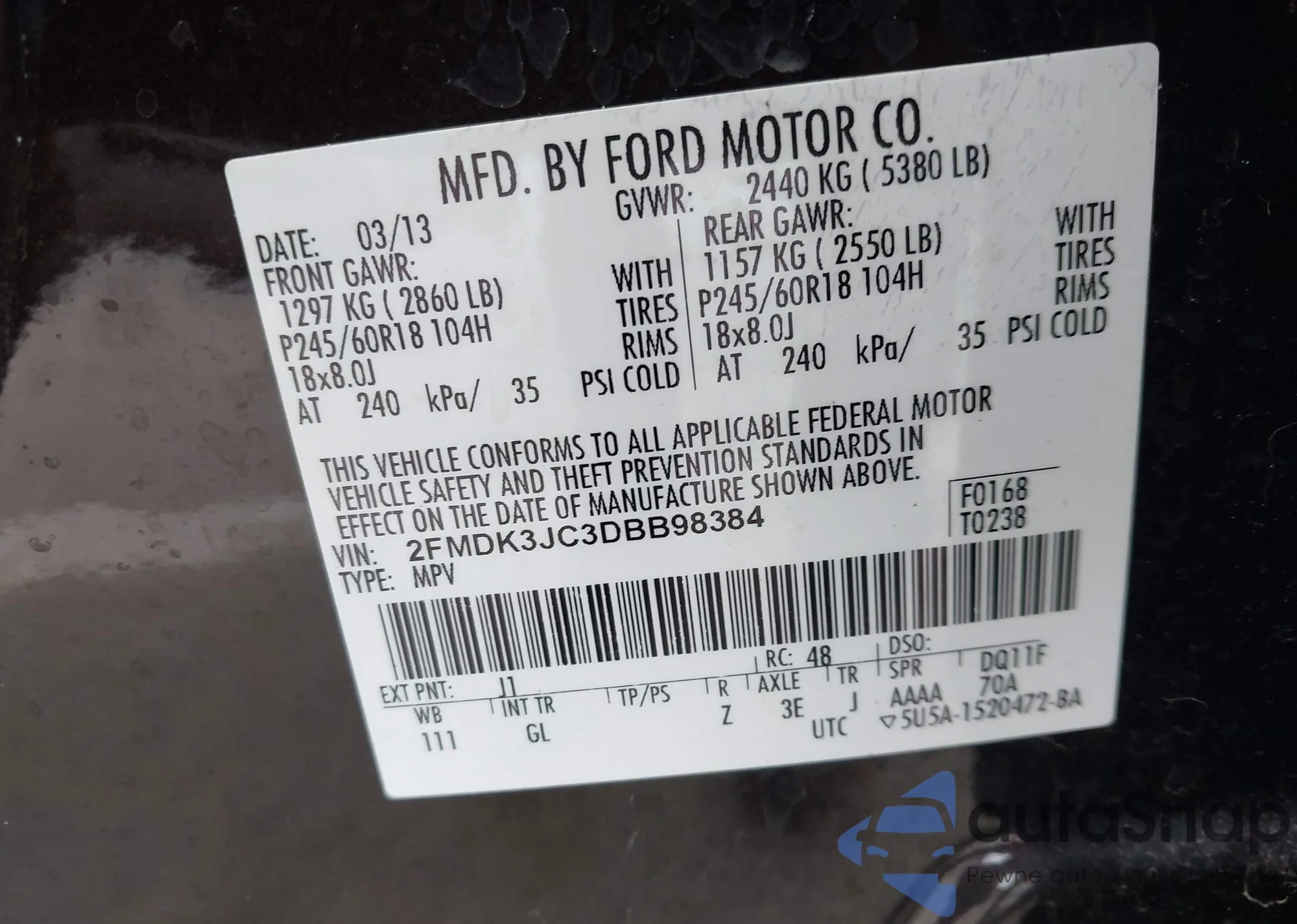 VIN: 2FMDK3JC3DBB98384