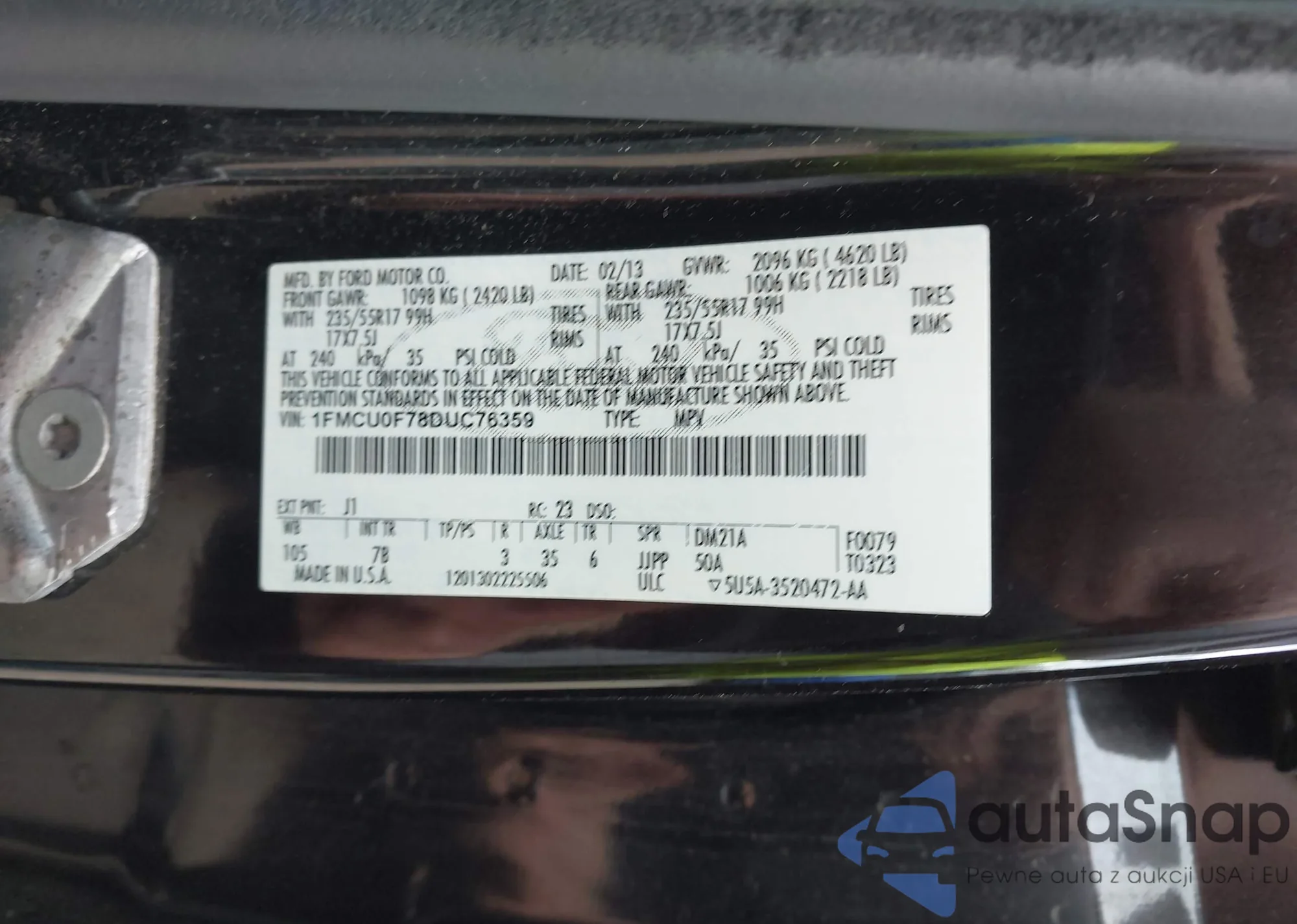 VIN: 1FMCU0F78DUC76359