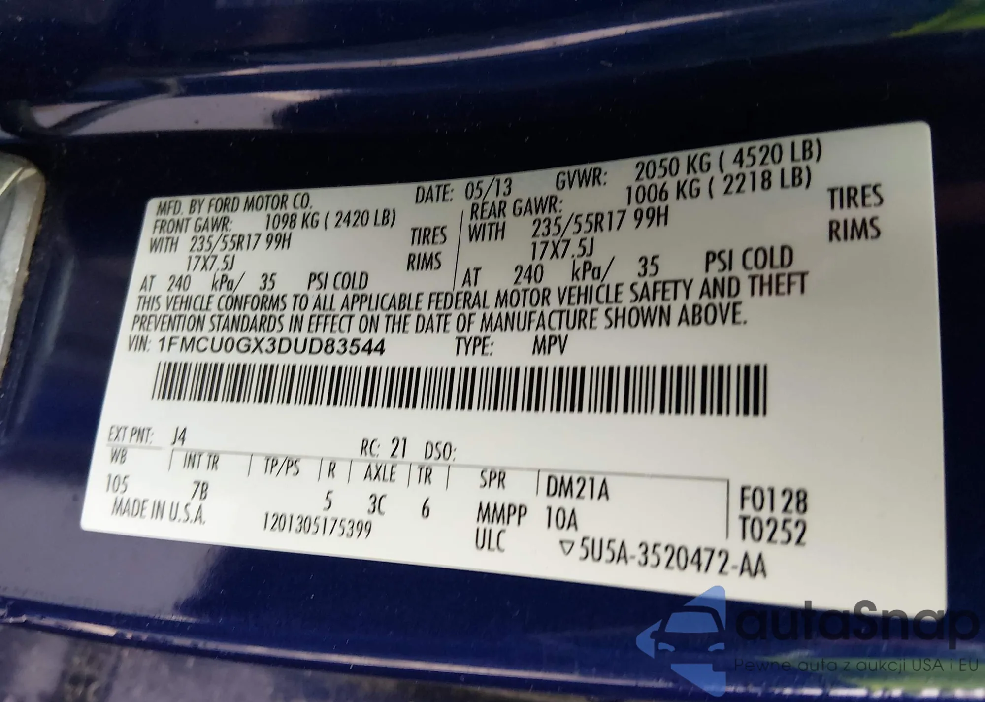 VIN: 1FMCU0GX3DUD83544