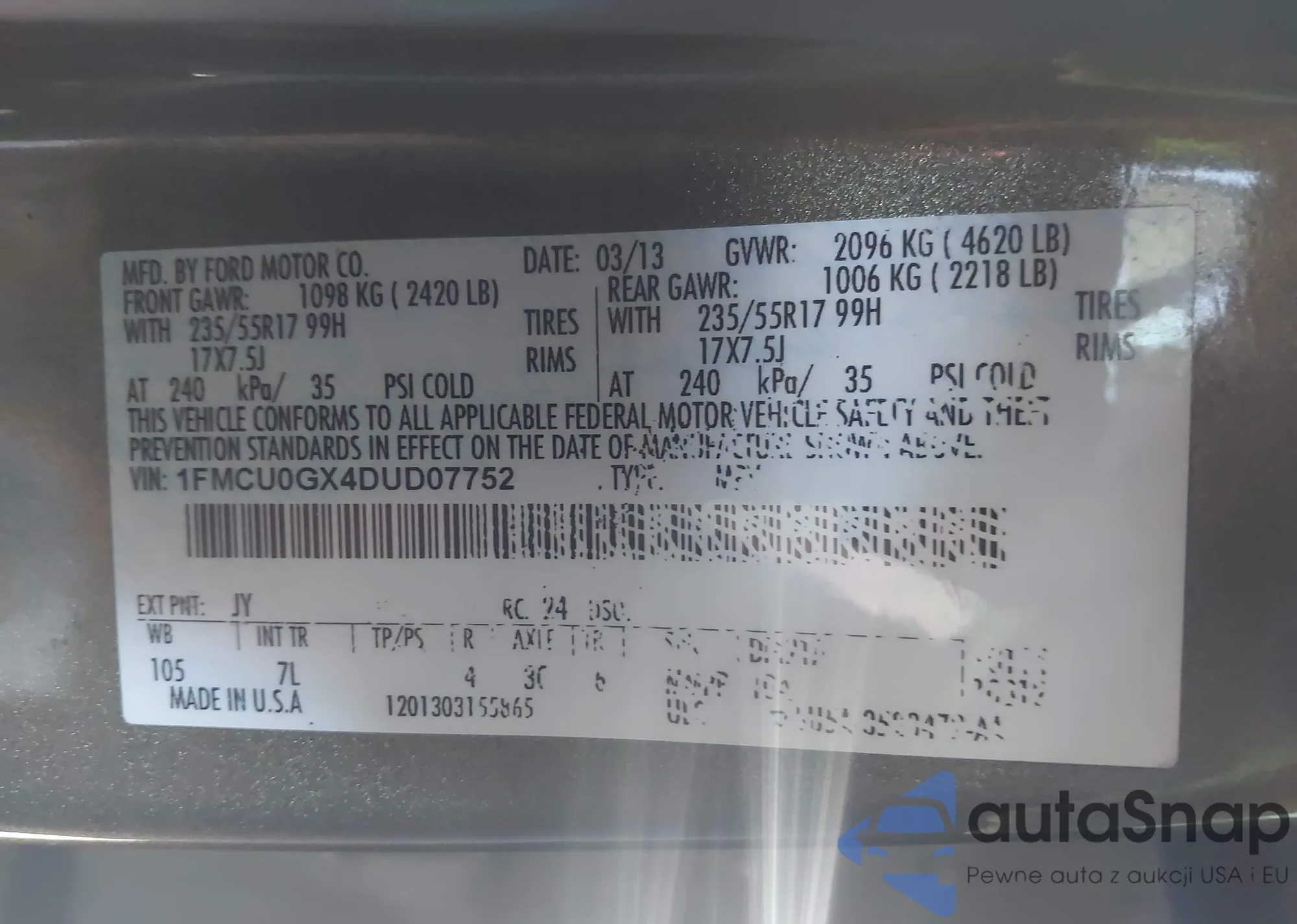 VIN: 1FMCU0GX4DUD07752