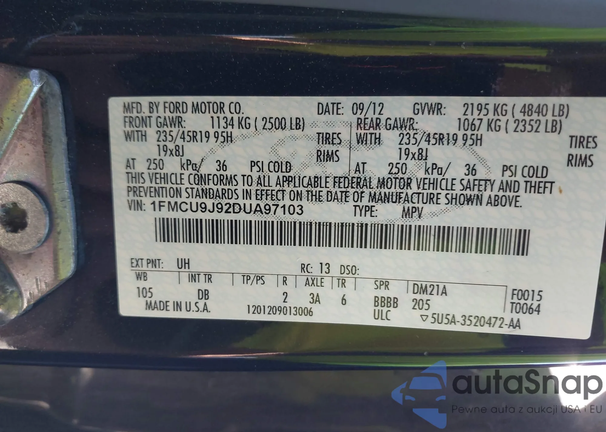 VIN: 1FMCU9J92DUA97103