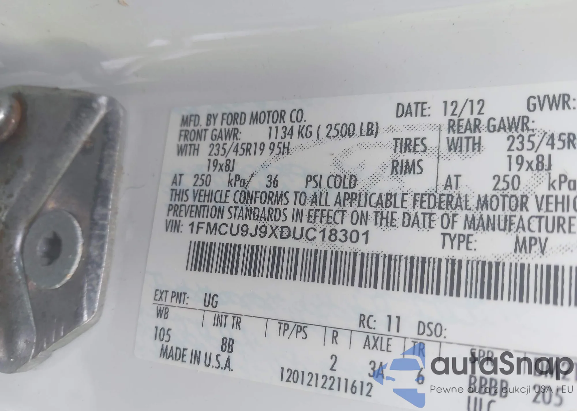 VIN: 1FMCU9J9XDUC18301