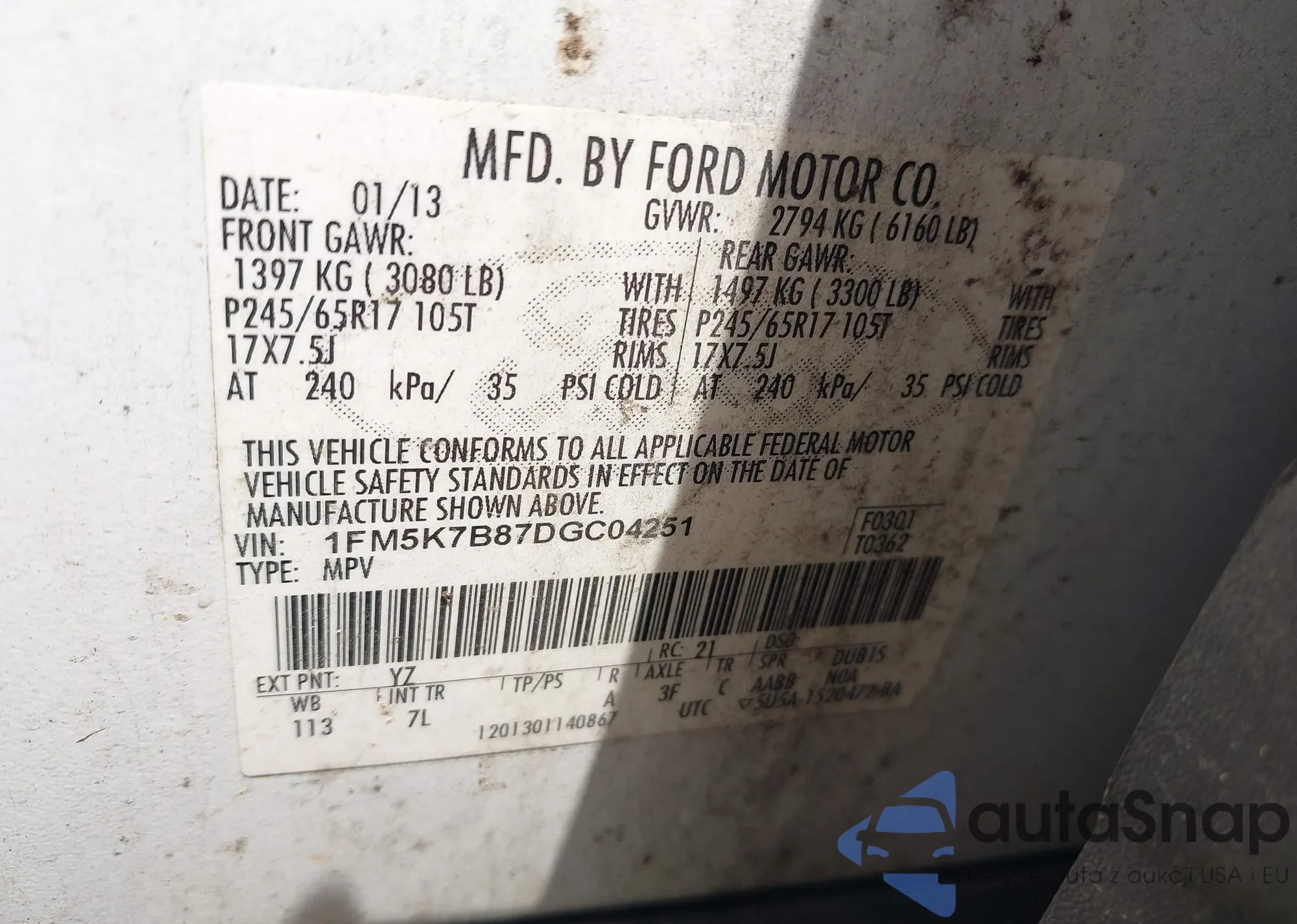 • VIN: 1FM5K7B87DGC04251