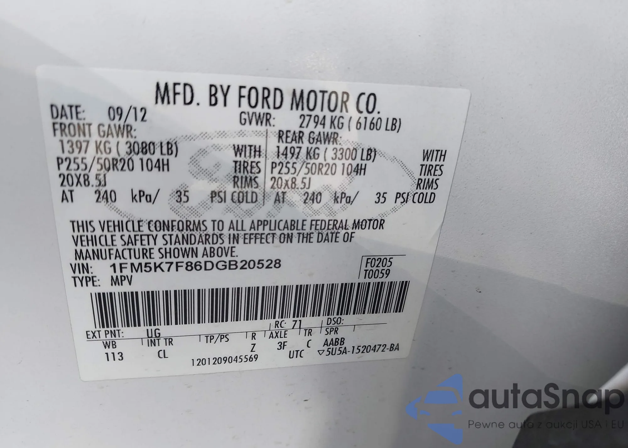 VIN: 1FM5K7F86DGB20528