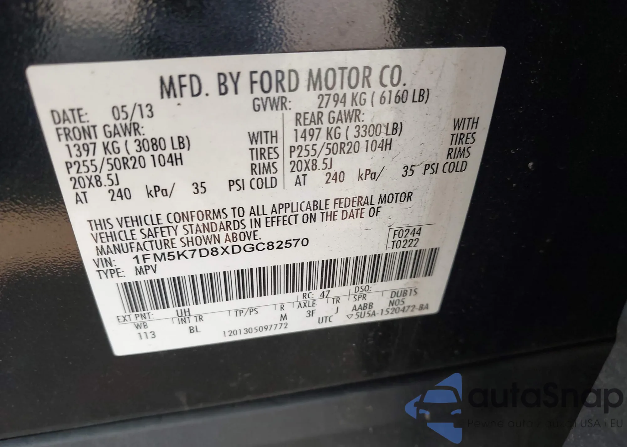 VIN: 1FM5K7D8XDGT82570