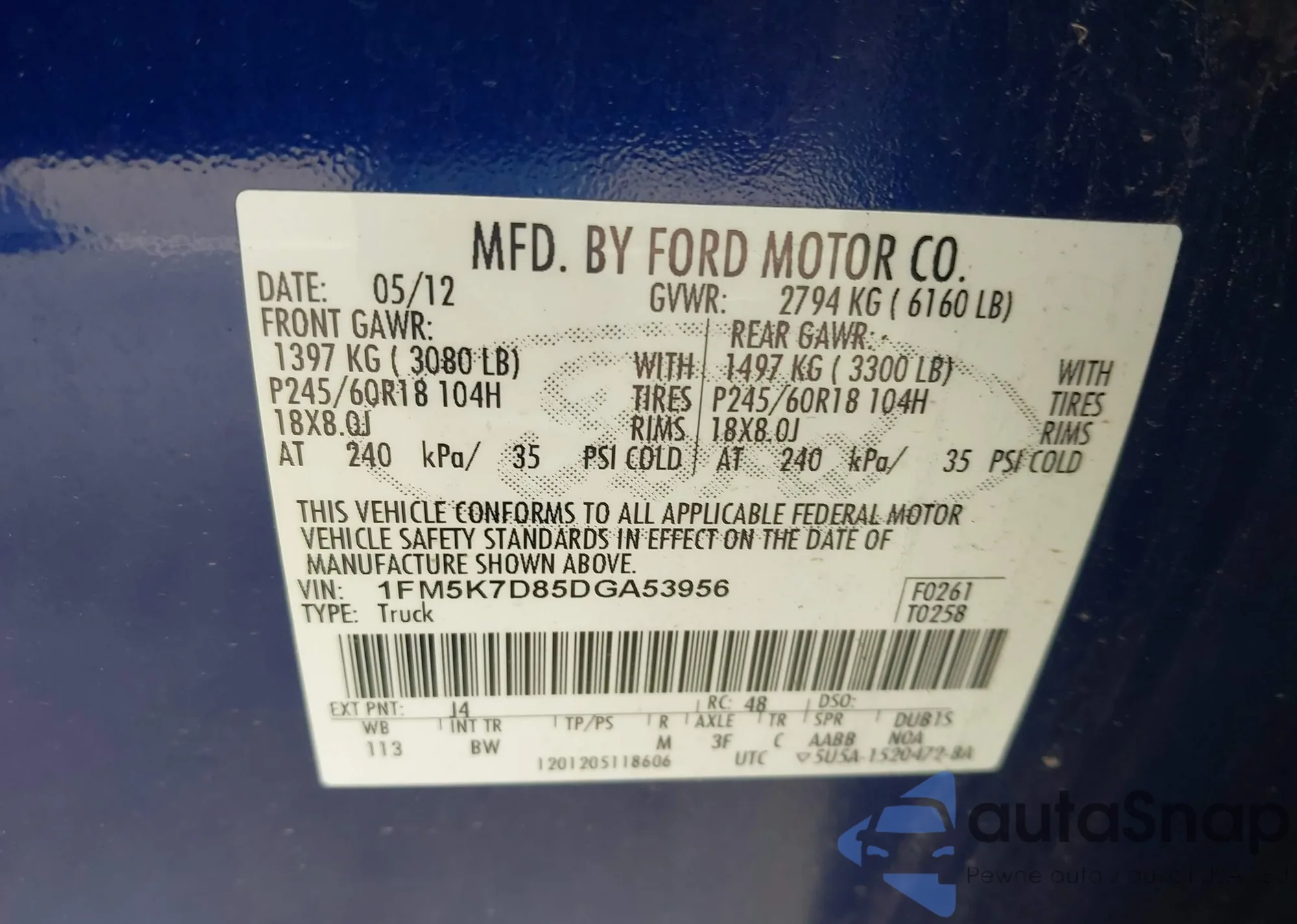 VIN: 1FM5K7D85DGA53956