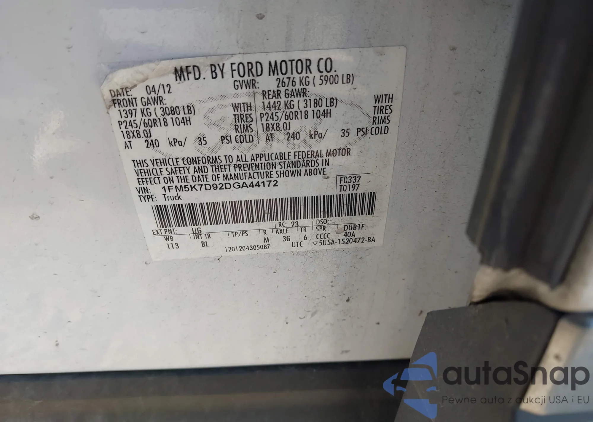 VIN: 1FM5K7D92DGA44172