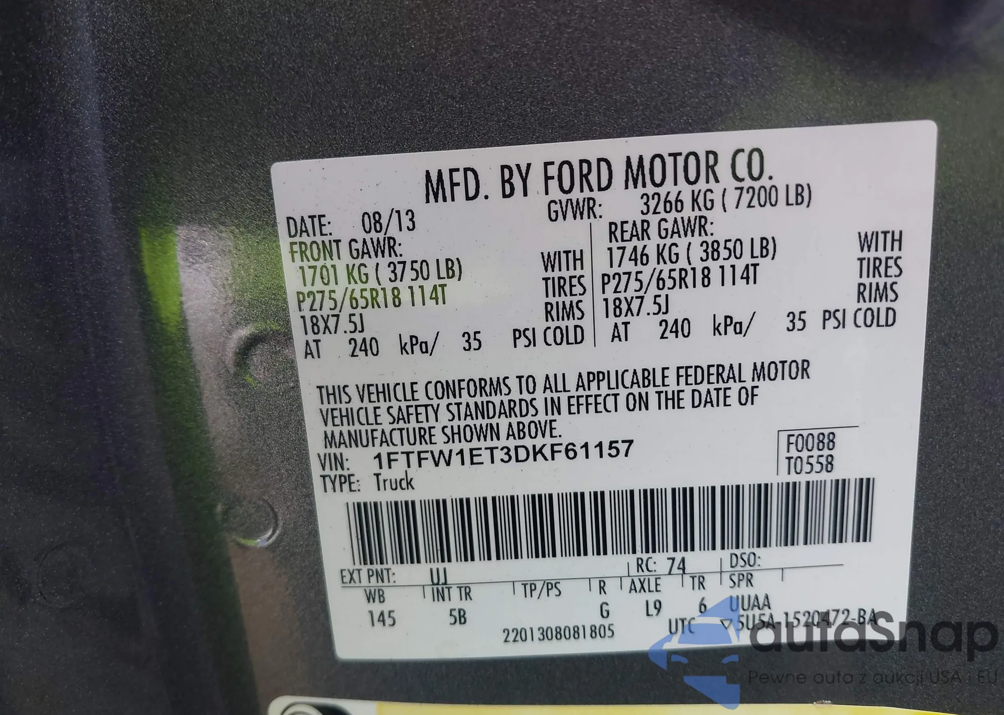 VIN: 1FTFW1ET3DKF61157