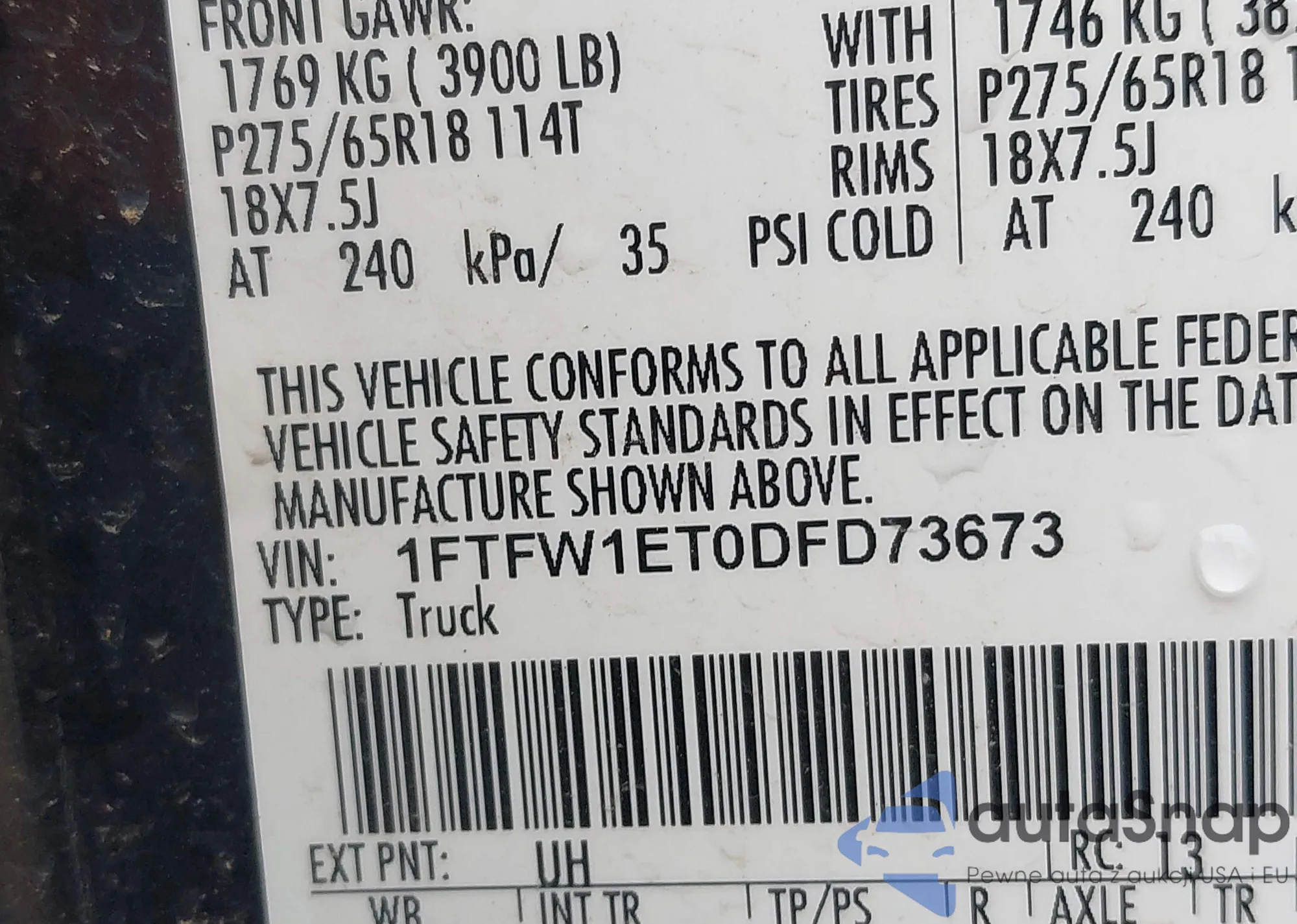 VIN: 1FTFW1ET0DFD73673