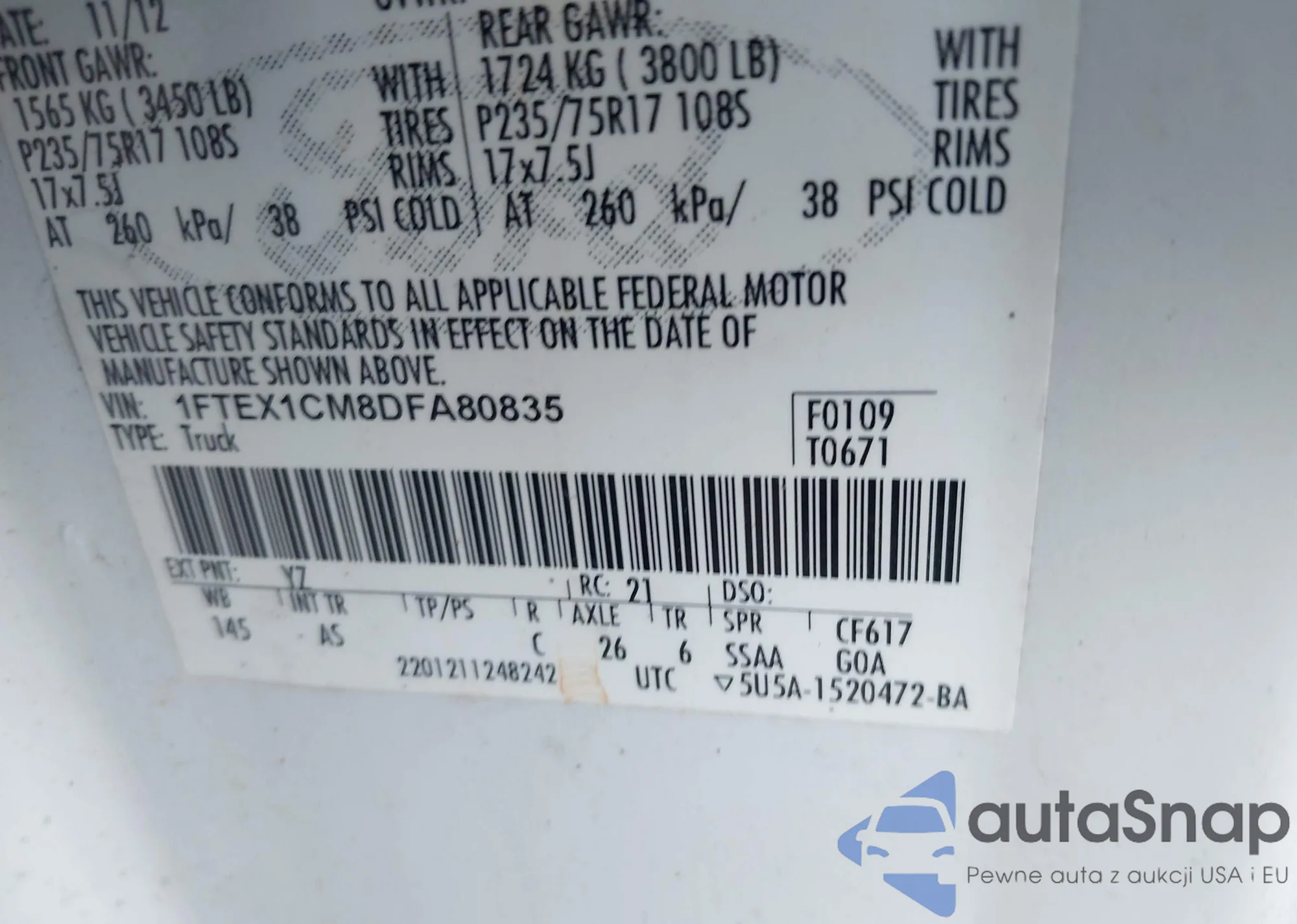 VIN: 1FTEX1CM8DFA80835
