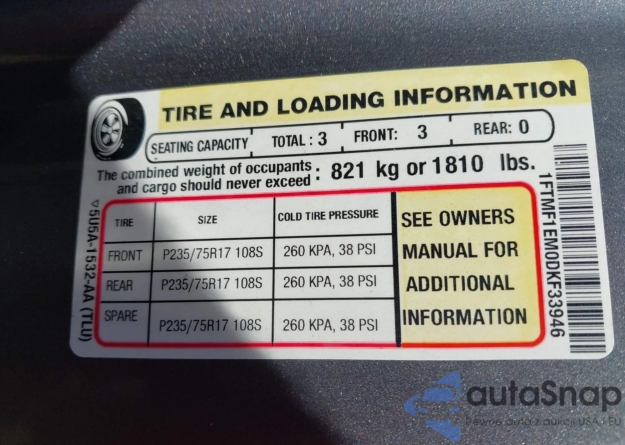 Автомобиль Ford F-150 2013 (VIN 1FTMF1EM0DKF33946) ранее не участвовал в торгах. Документы чистые, пробег соответствует или ниже среднего по рынку. Продаётся страховой компанией — рекомендуем покупку. Доставка в порт займет около 6–8 недель.