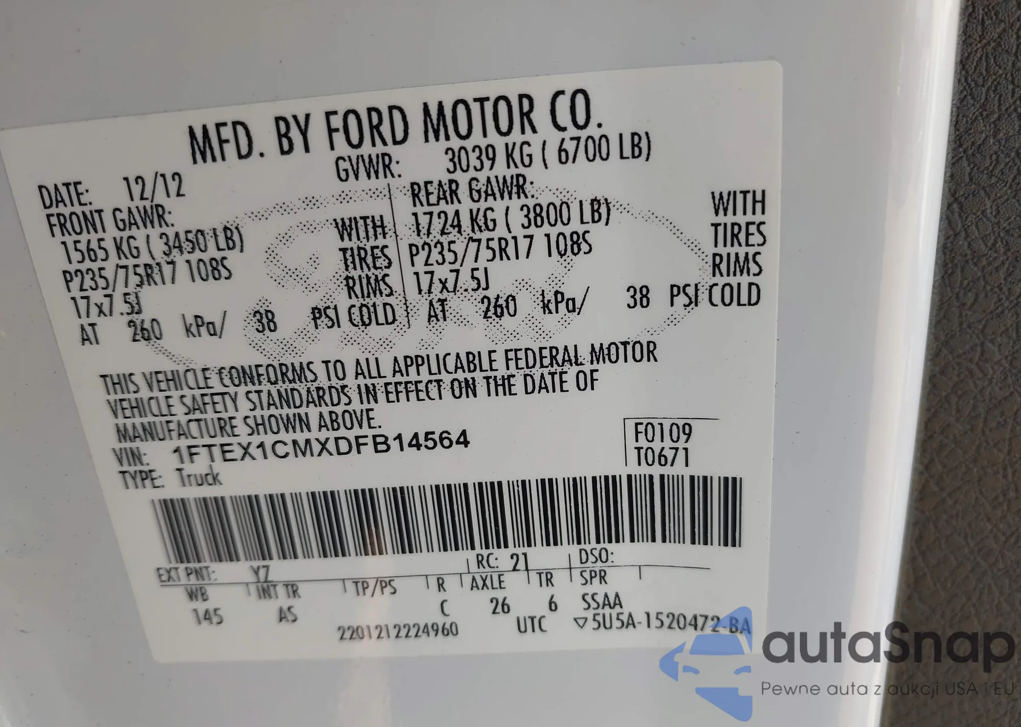Автомобиль Ford F-150 2013 (VIN 1FTEX1CMXDFB14564) ранее не участвовал в торгах. Документы чистые, пробег соответствует или ниже среднего по рынку. Продаётся страховой компанией — рекомендуем покупку. Доставка в порт займет около 6–8 недель.