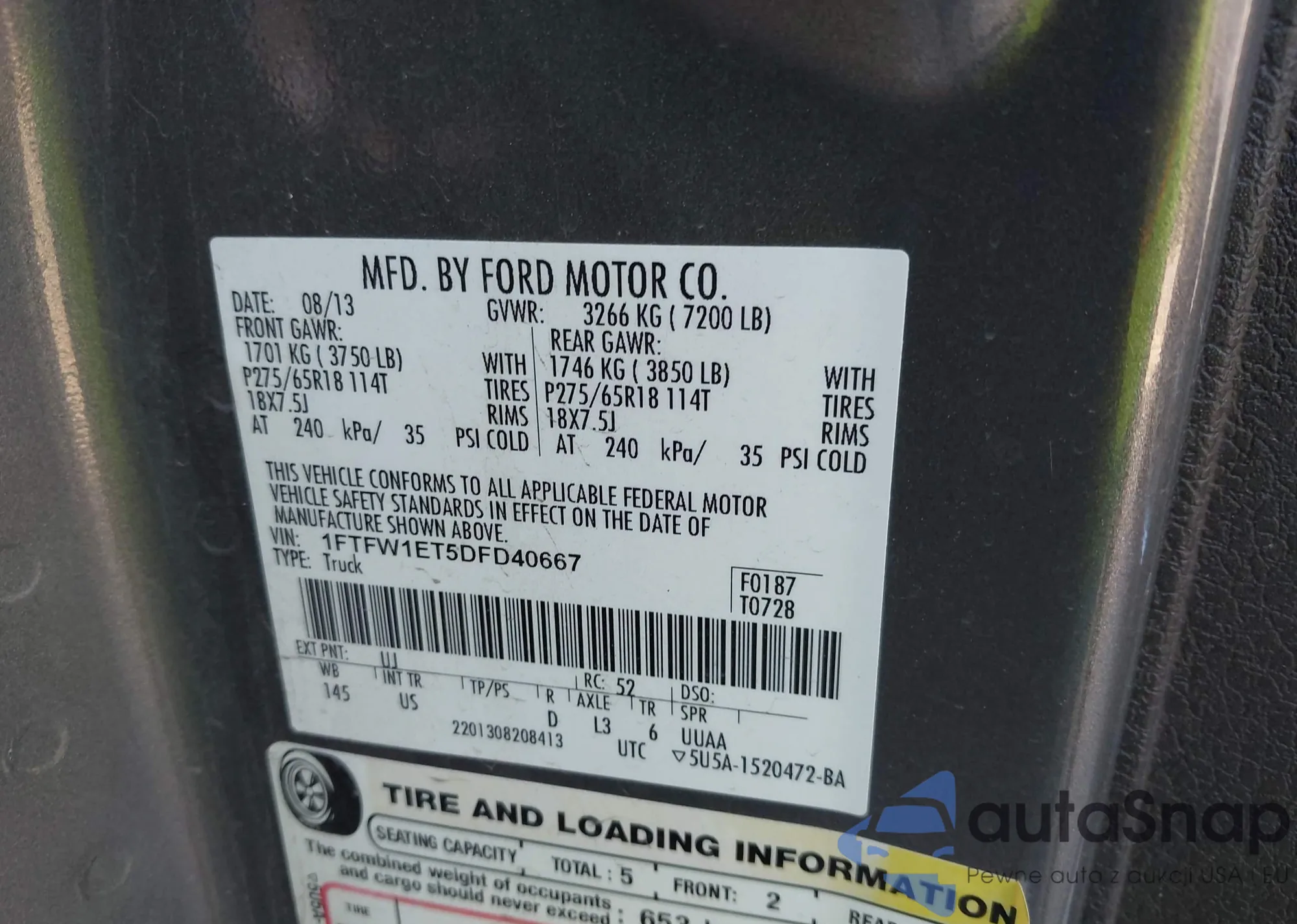 VIN: 1FTFW1ET5DFD40667