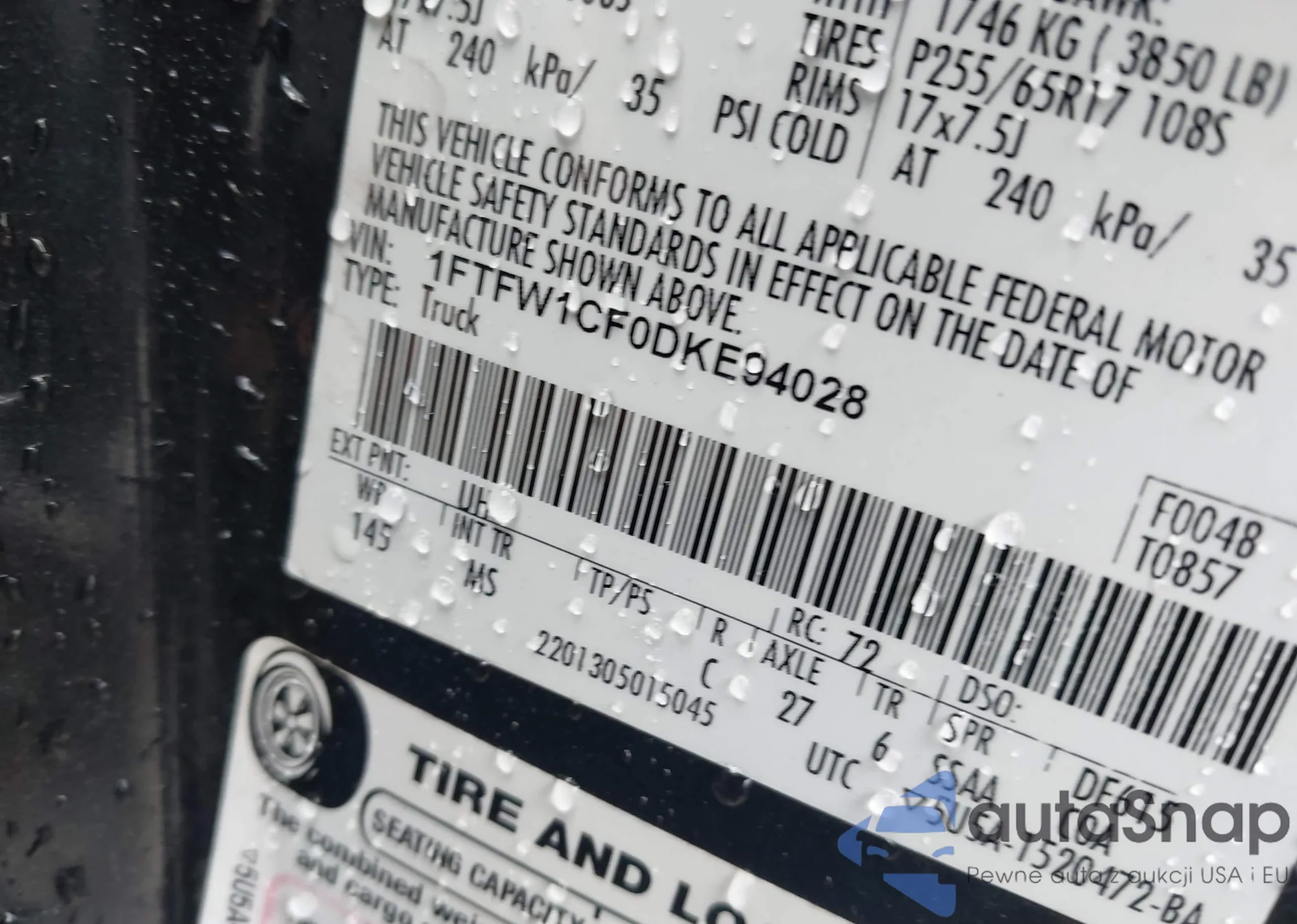 VIN: 1FTFW1CF0DKE94028