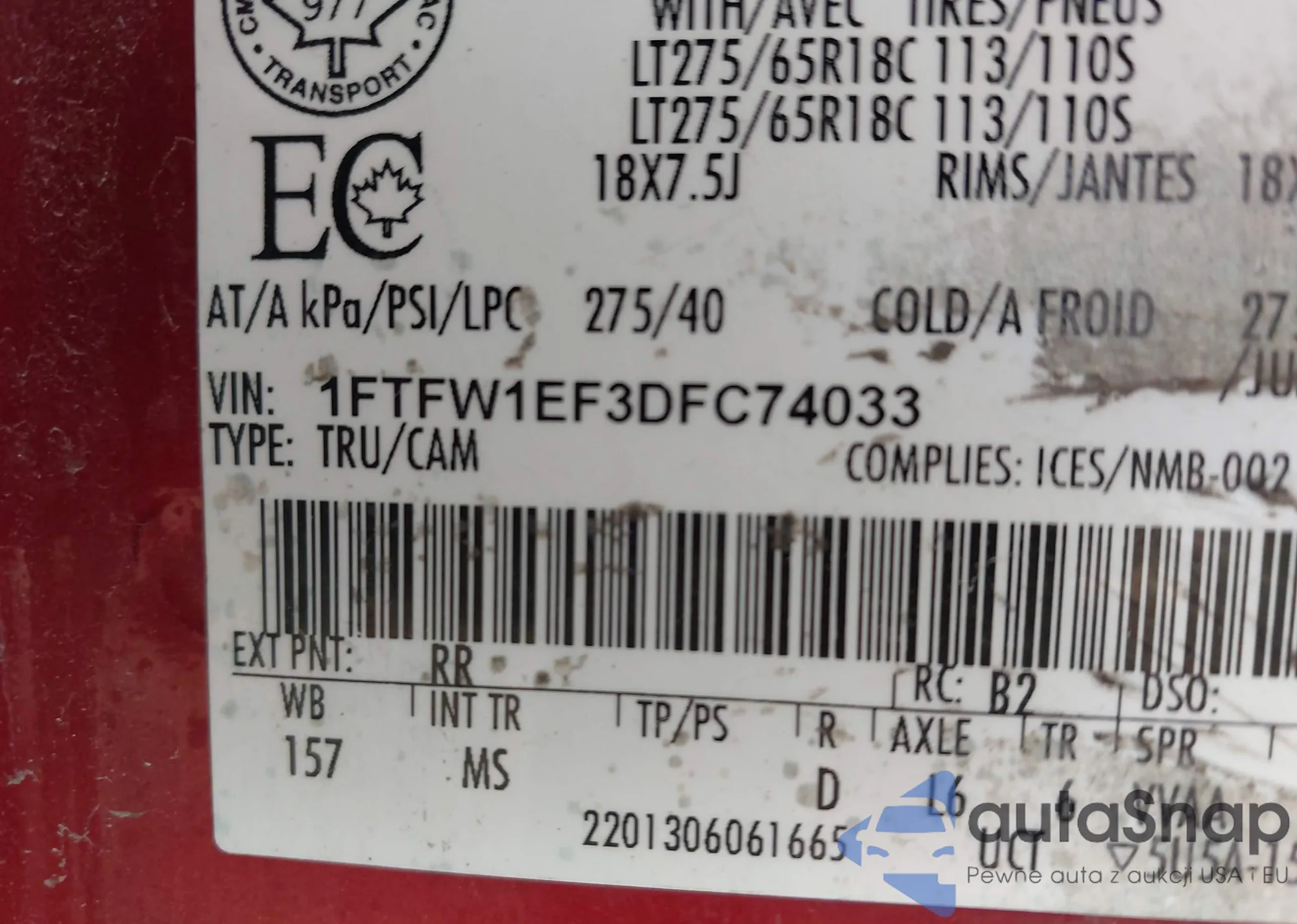 VIN: 1FTFW1EF3DFC74033