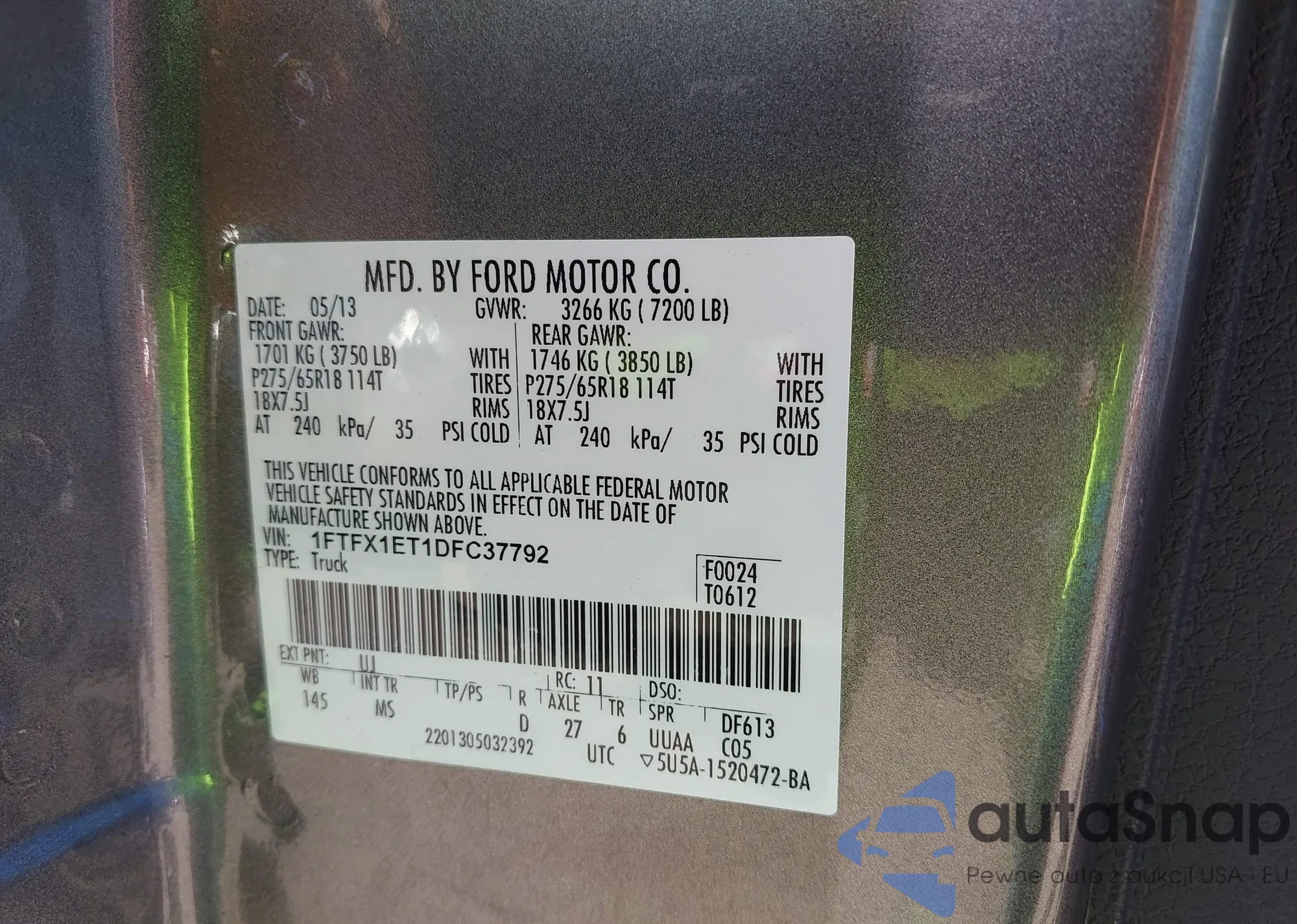 VIN: 1FTFX1ET1DFC37792