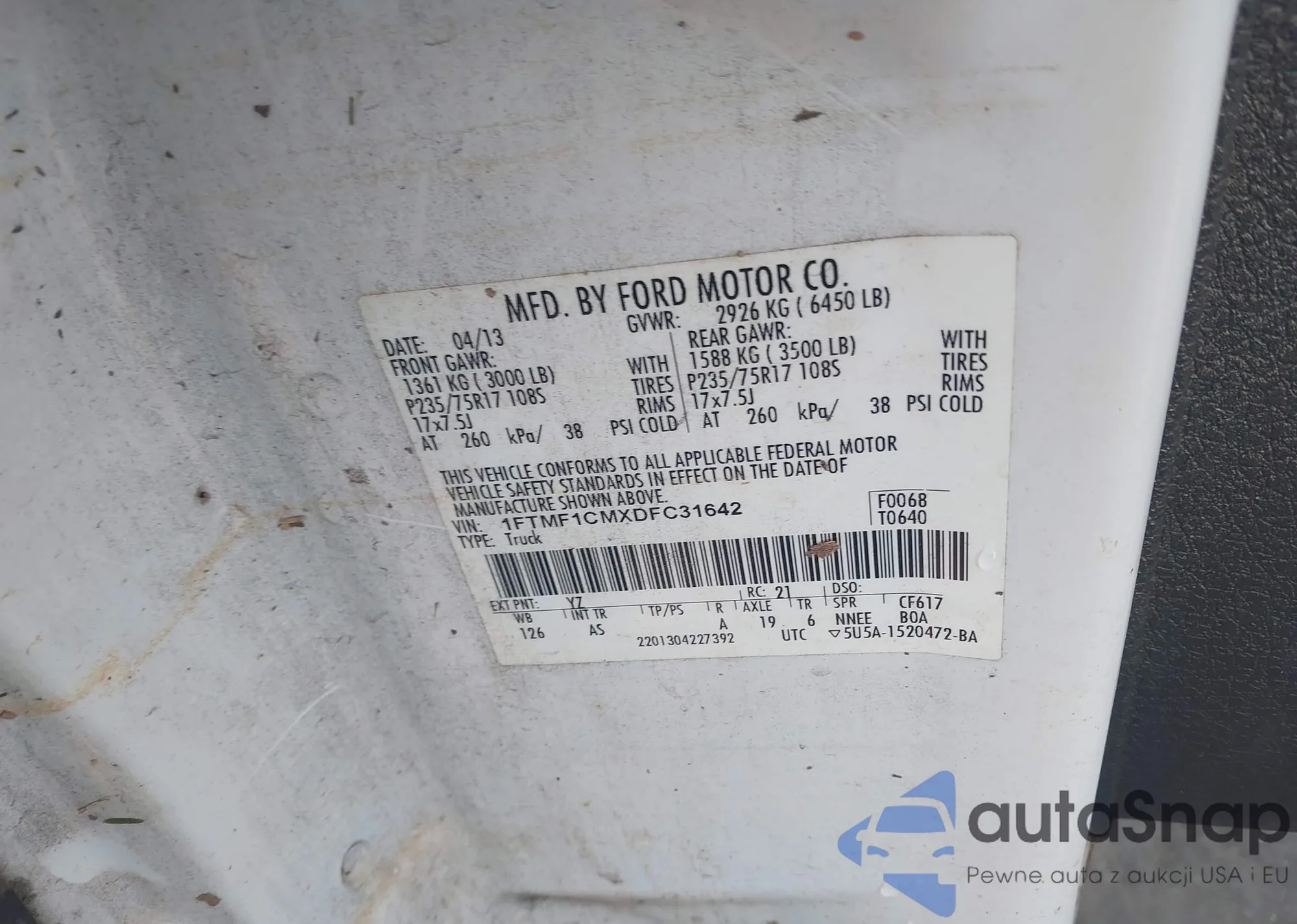 • VIN: 1FTMF1CMXDFC31642