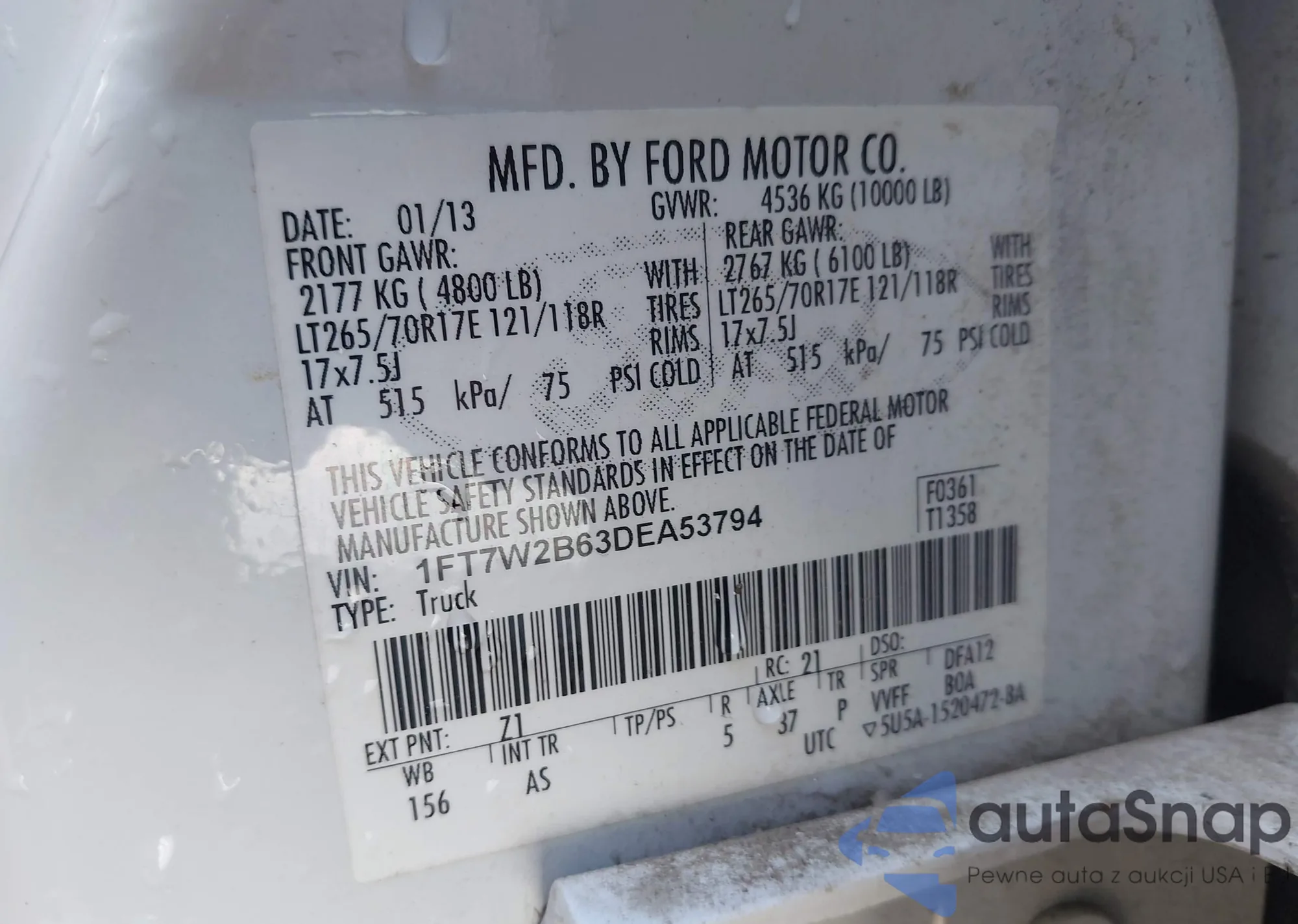 Автомобиль Ford F250 2013 (VIN 1FT7W2B63DEA53794) ранее не участвовал в торгах. Документы чистые, пробег соответствует или ниже среднего по рынку. Продаётся страховой компанией — рекомендуем покупку. Доставка в порт займет около 6–8 недель.