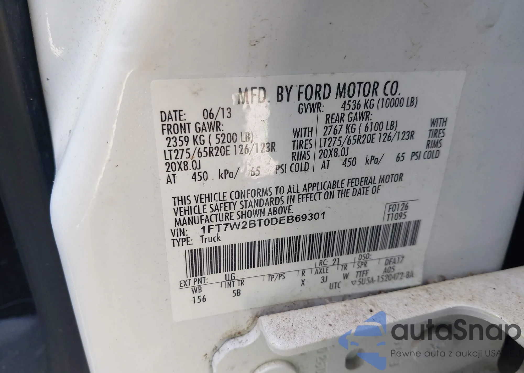 VIN: 1FT7W2BT0DEB69301