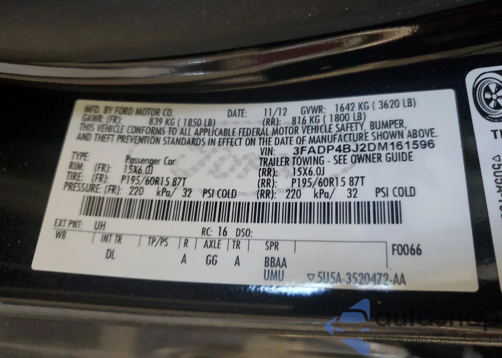 VIN: 3FADP4BJ2DM161596
