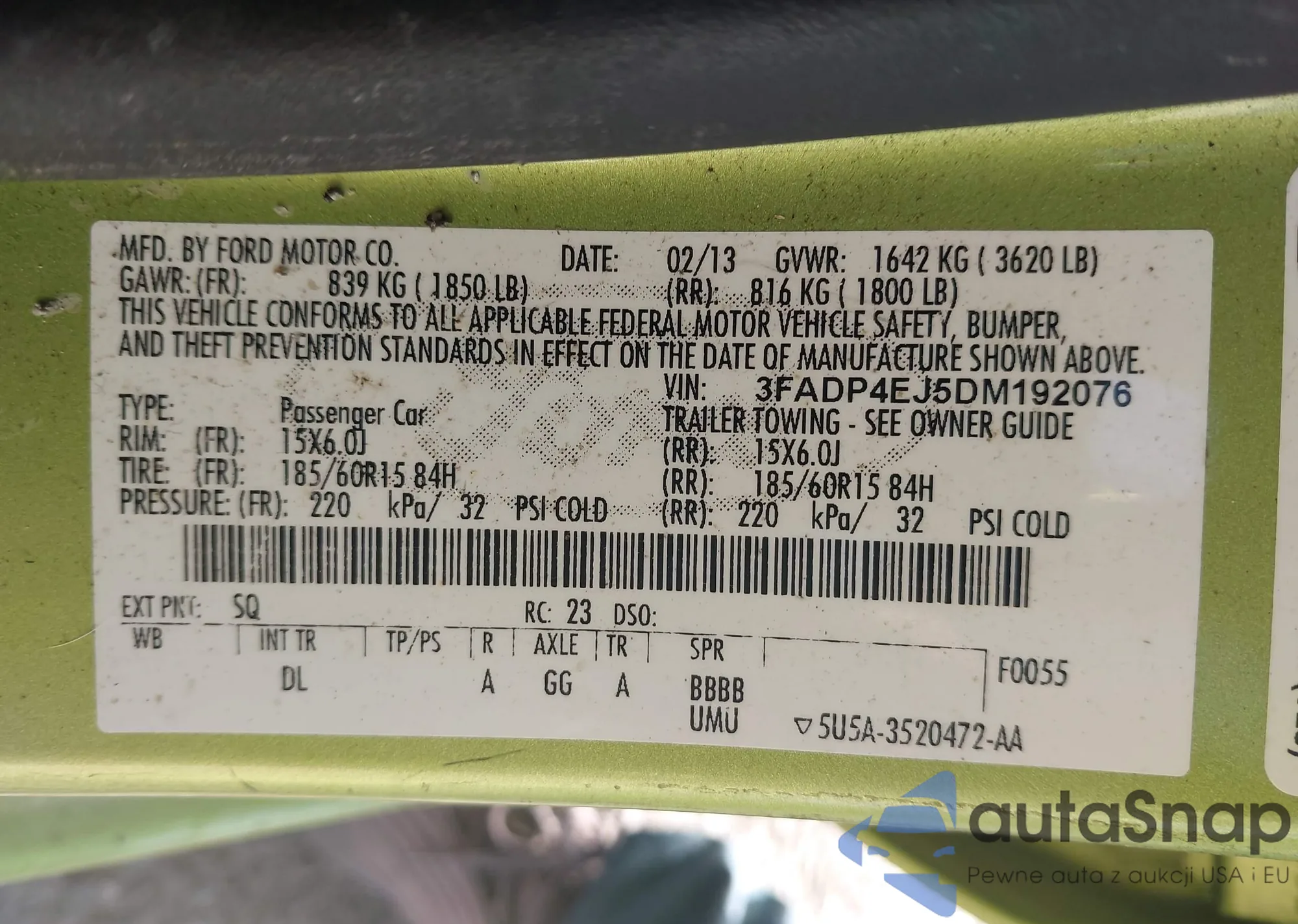 VIN: 3FADP4EJ5DM192076