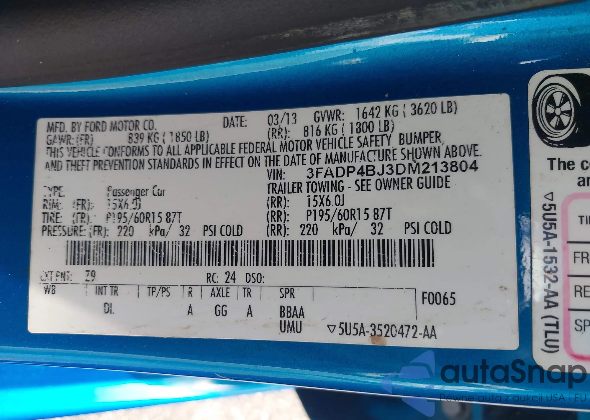 VIN: 3FADP4BJ3DM213804