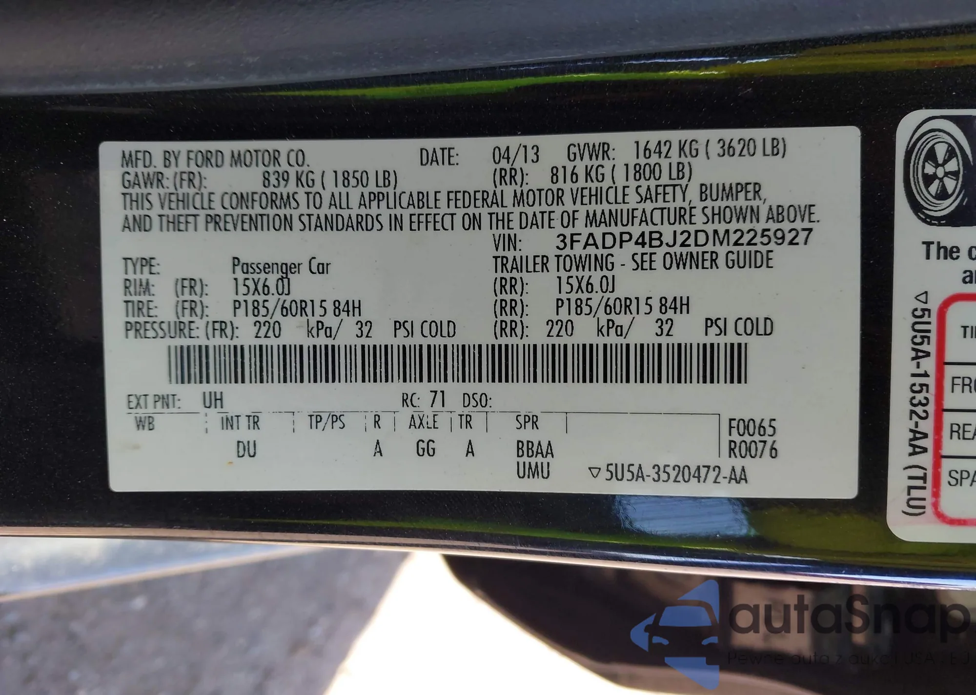 VIN: 3FADP4BJ2DM225927