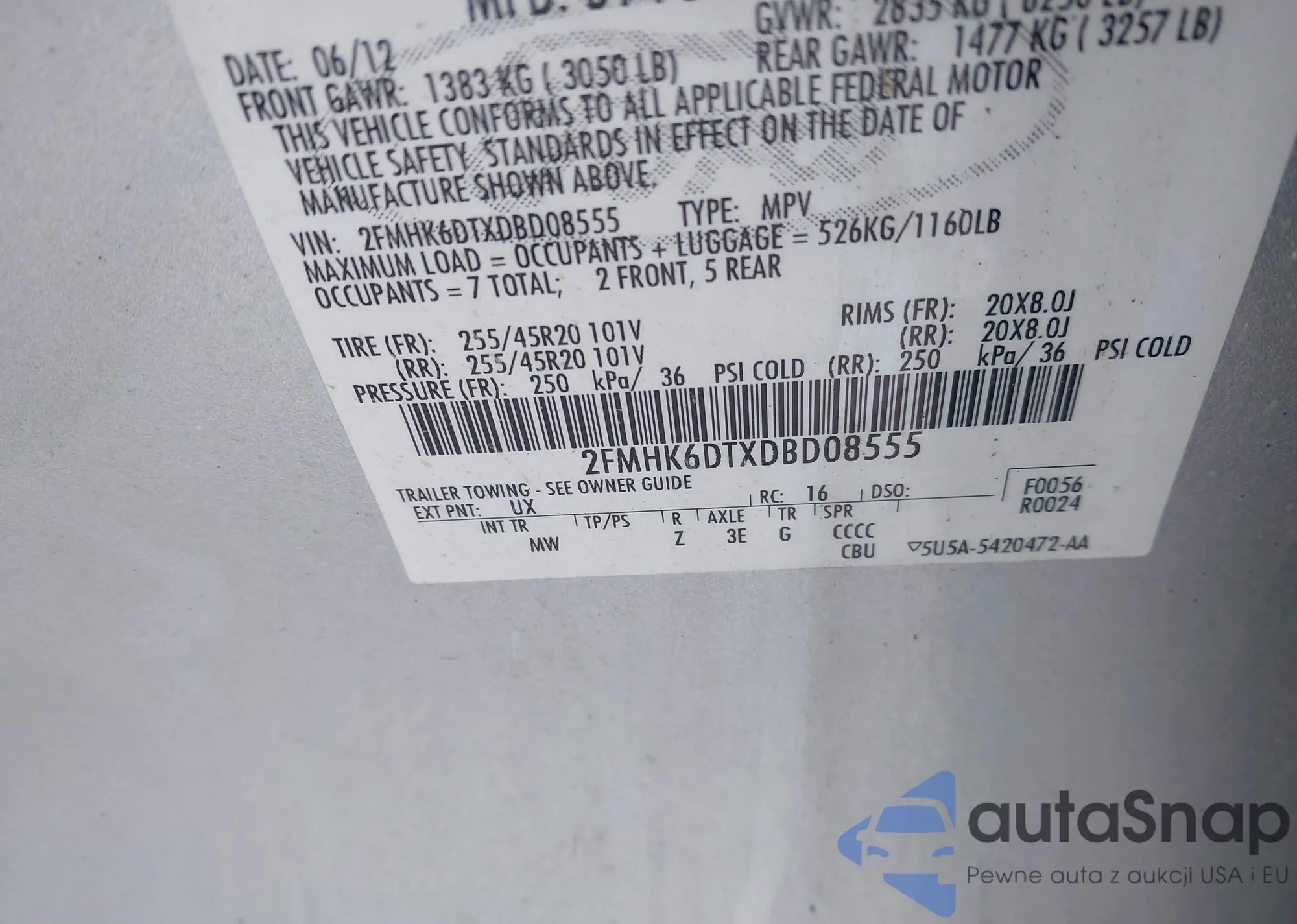 VIN: 2FMHK6DTXDBD08555