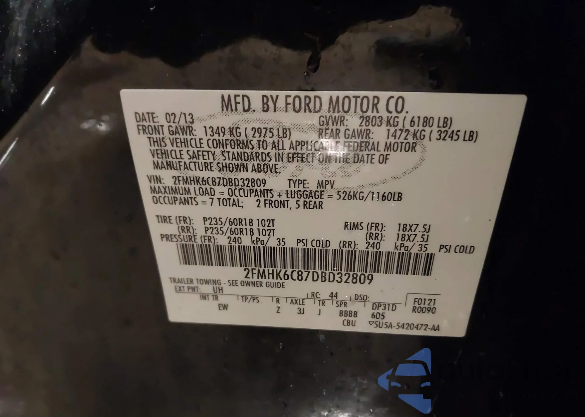 • VIN: 2FMHK6C87DBD32809