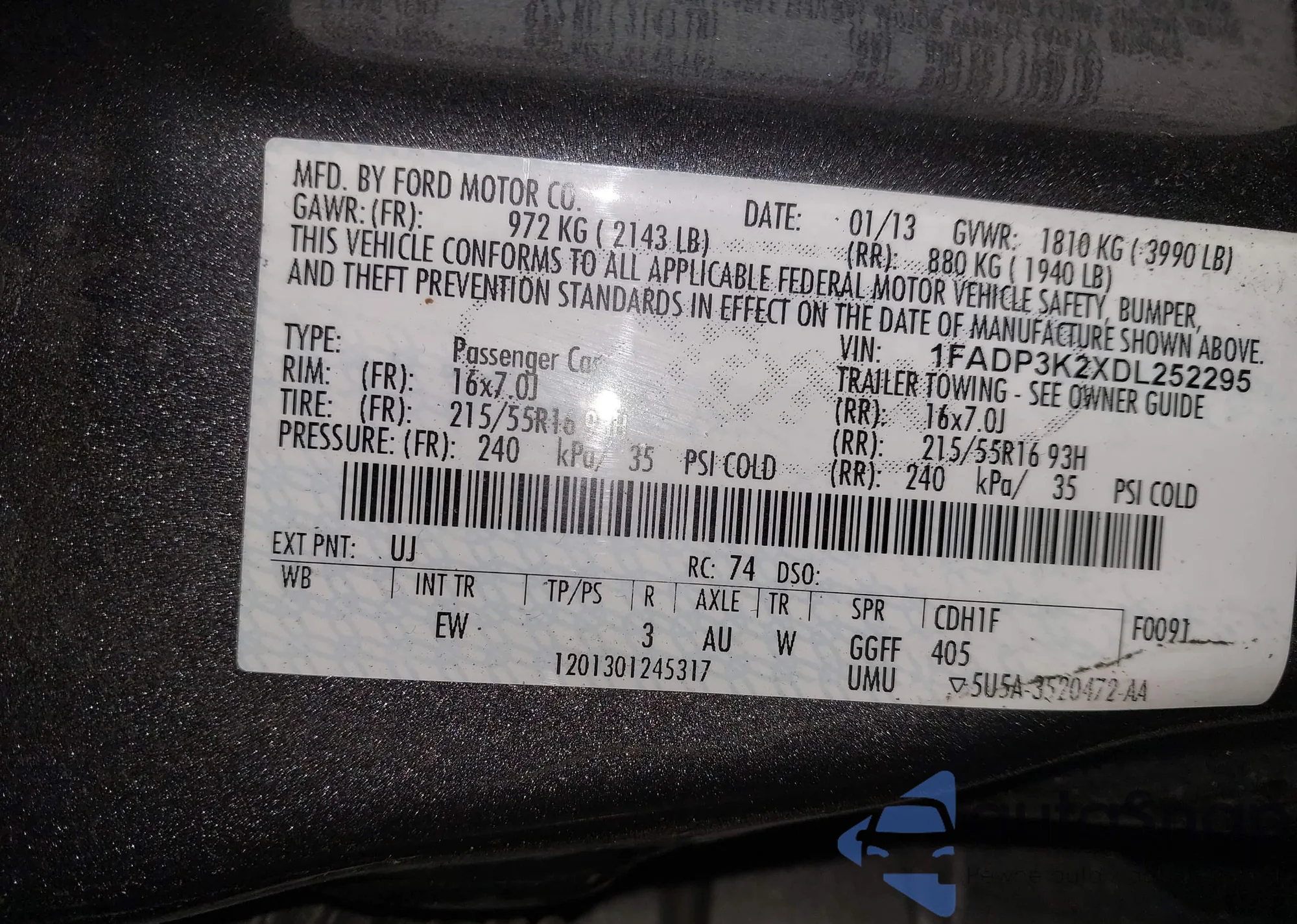 VIN: 1FADP3K2XDL252295