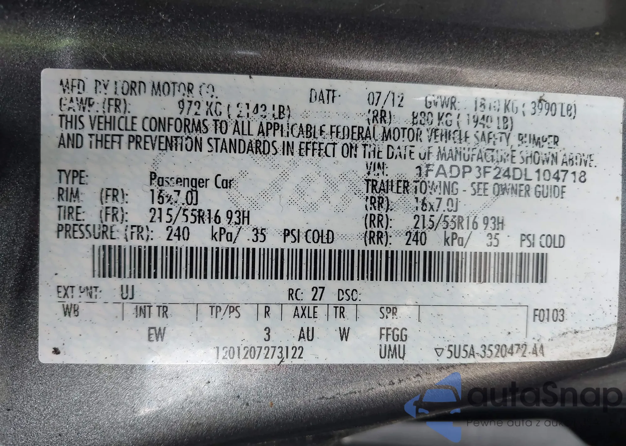 VIN: 1FADP3F24DL104718