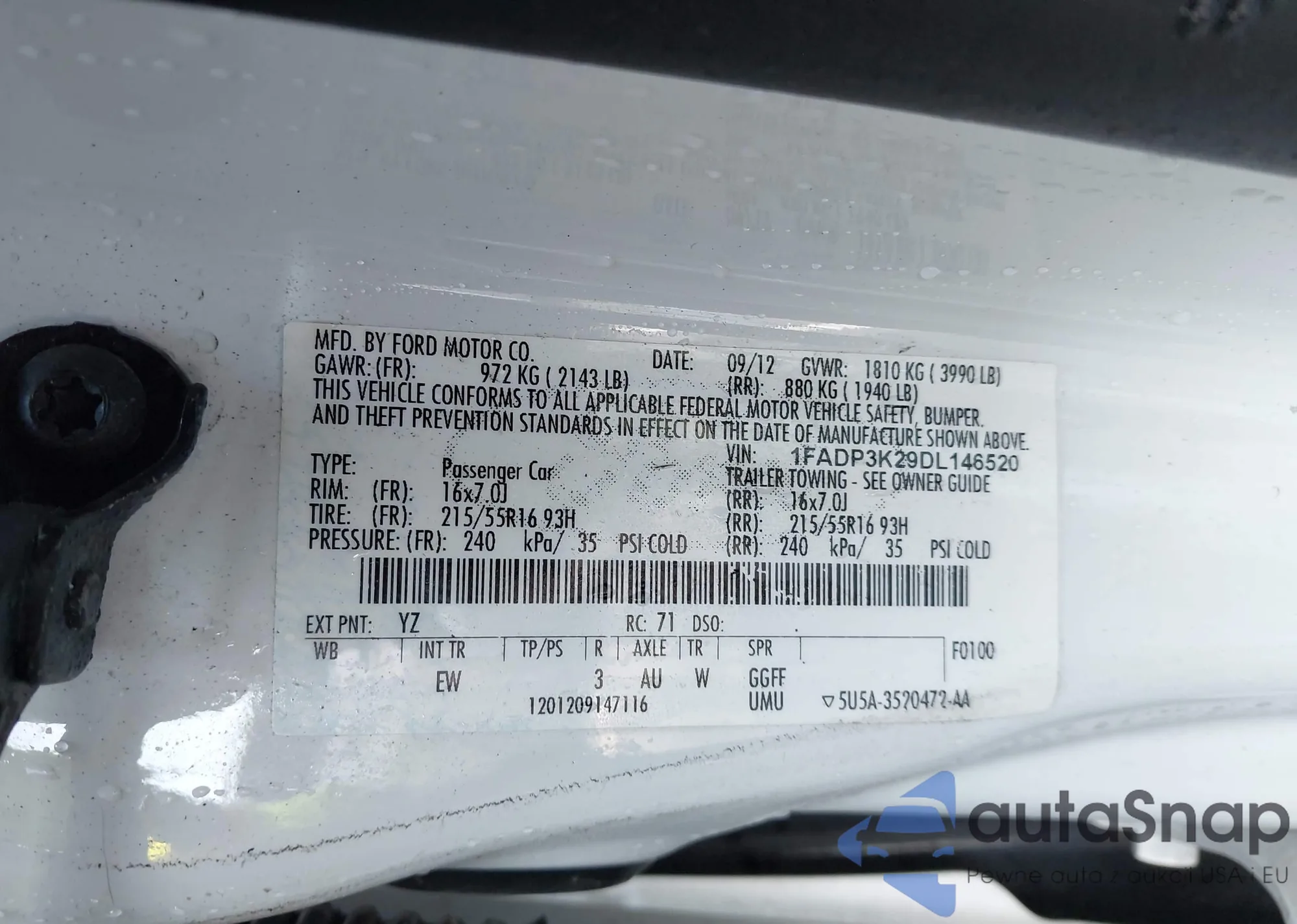 VIN: 1FADP3K29DL146520