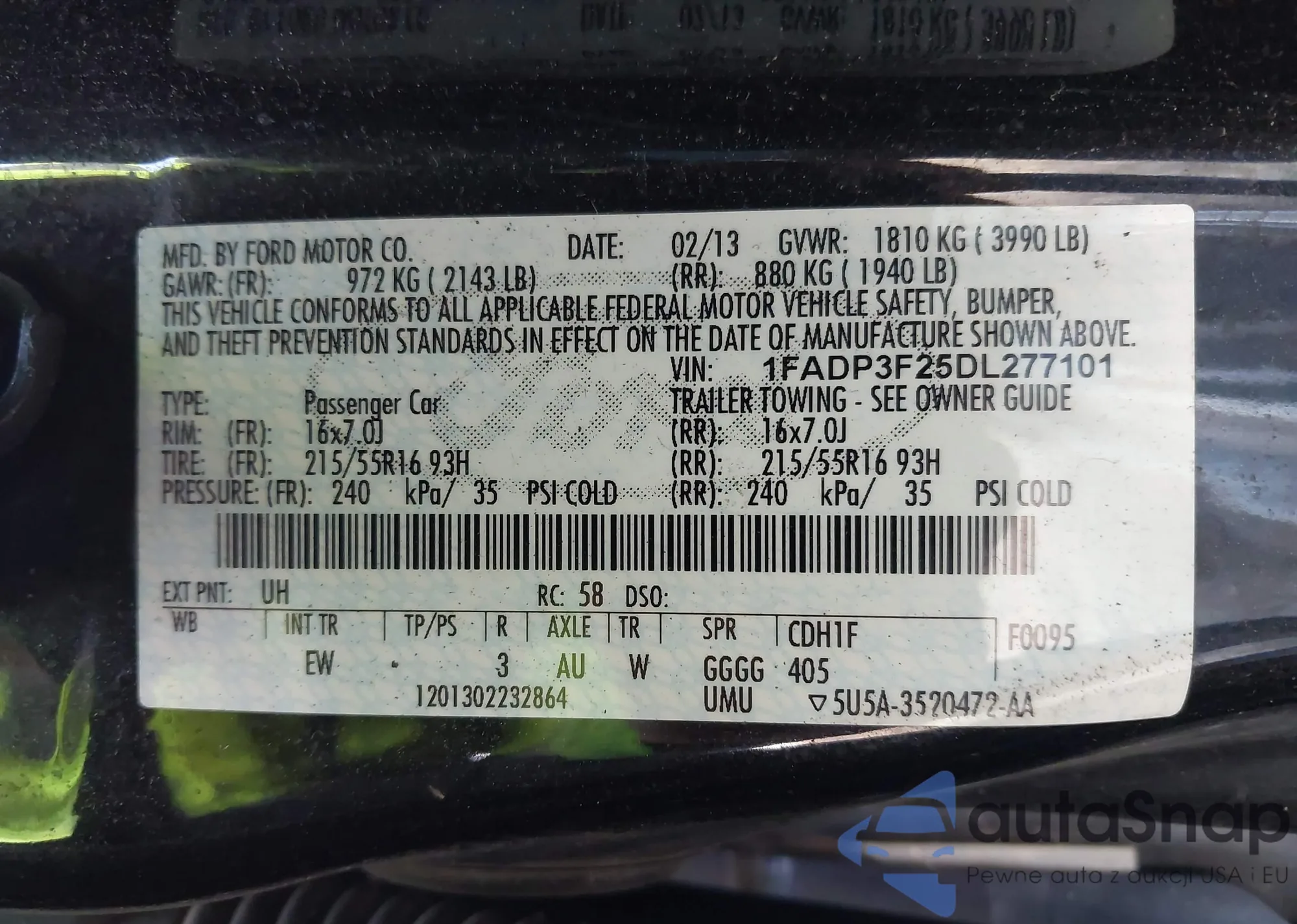 VIN: 1FADP3F25DL277101