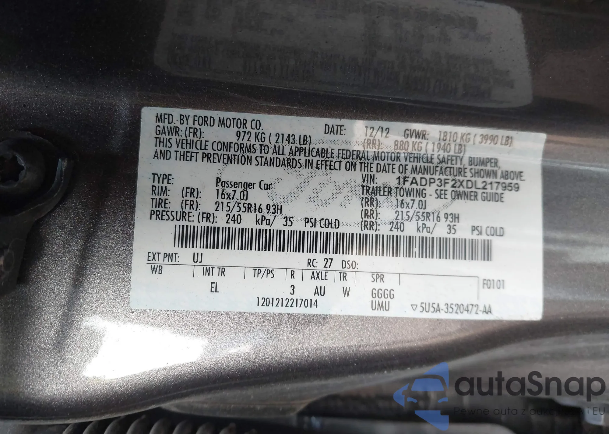VIN: 1FADP3F2XDL217959