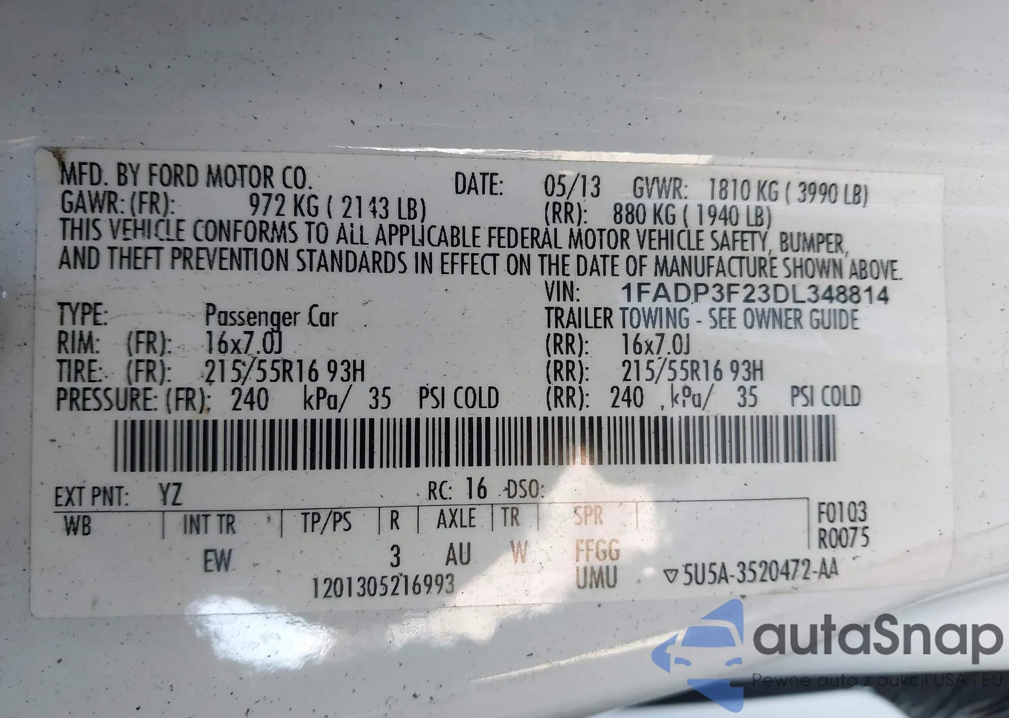 Автомобиль Ford Focus 2013 (VIN 1FADP3F23DL348814) ранее не участвовал в торгах. Документы чистые, пробег соответствует или ниже среднего по рынку. Продаётся страховой компанией — рекомендуем покупку. Доставка в порт займет около 6–8 недель.