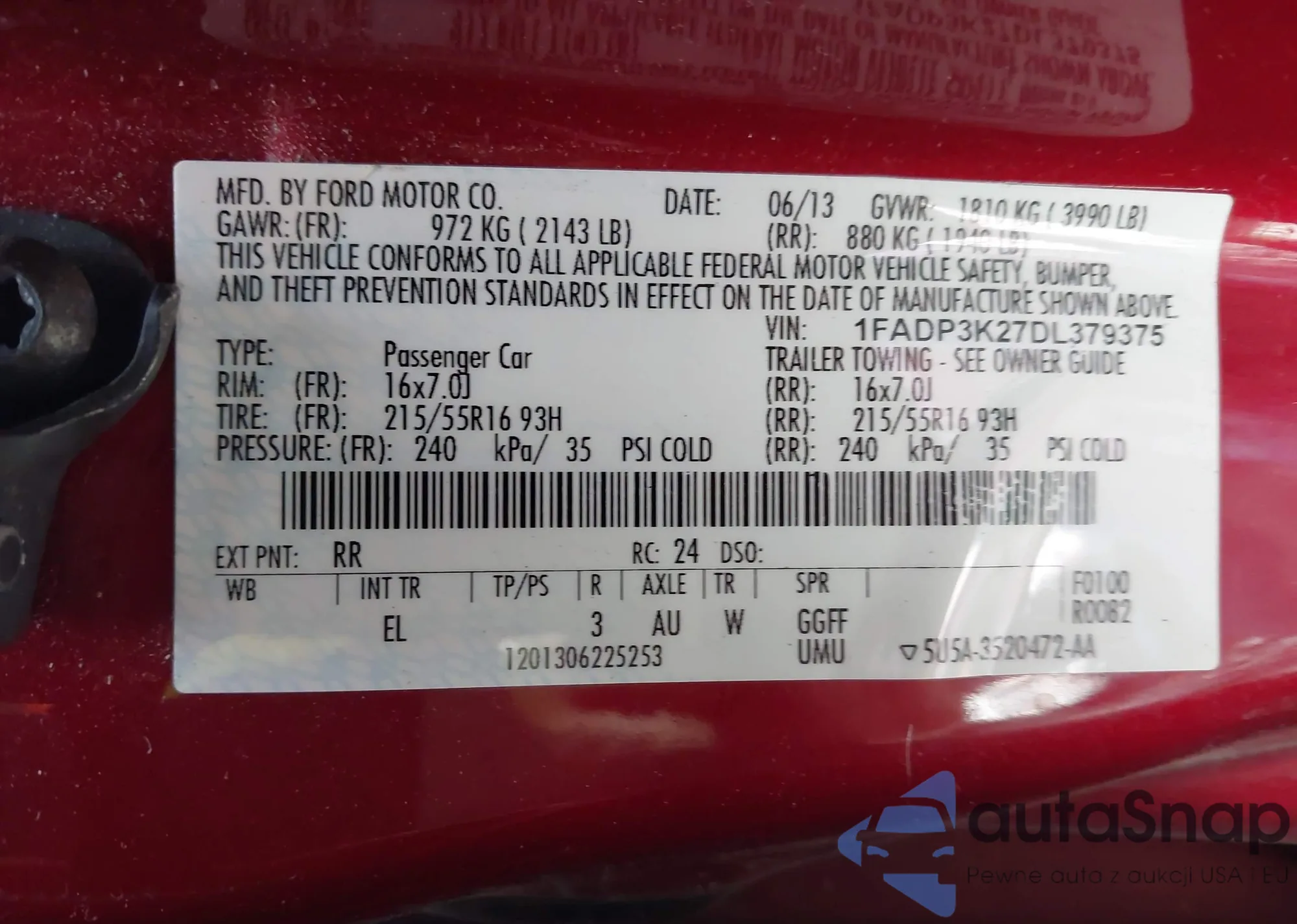 VIN: 1FADP3K27DL379375